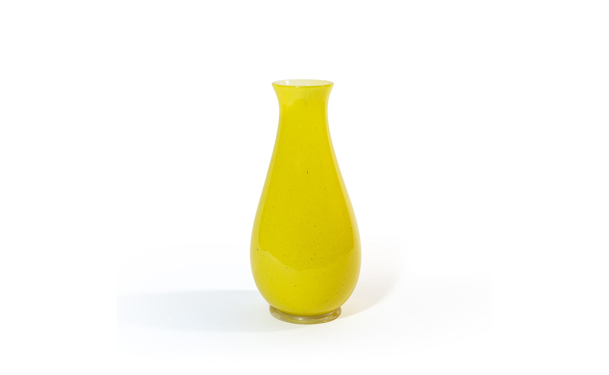 Un vaso a balaustro in vetro 'eugeneo' con graniglie gialle e piede in cristallo.
