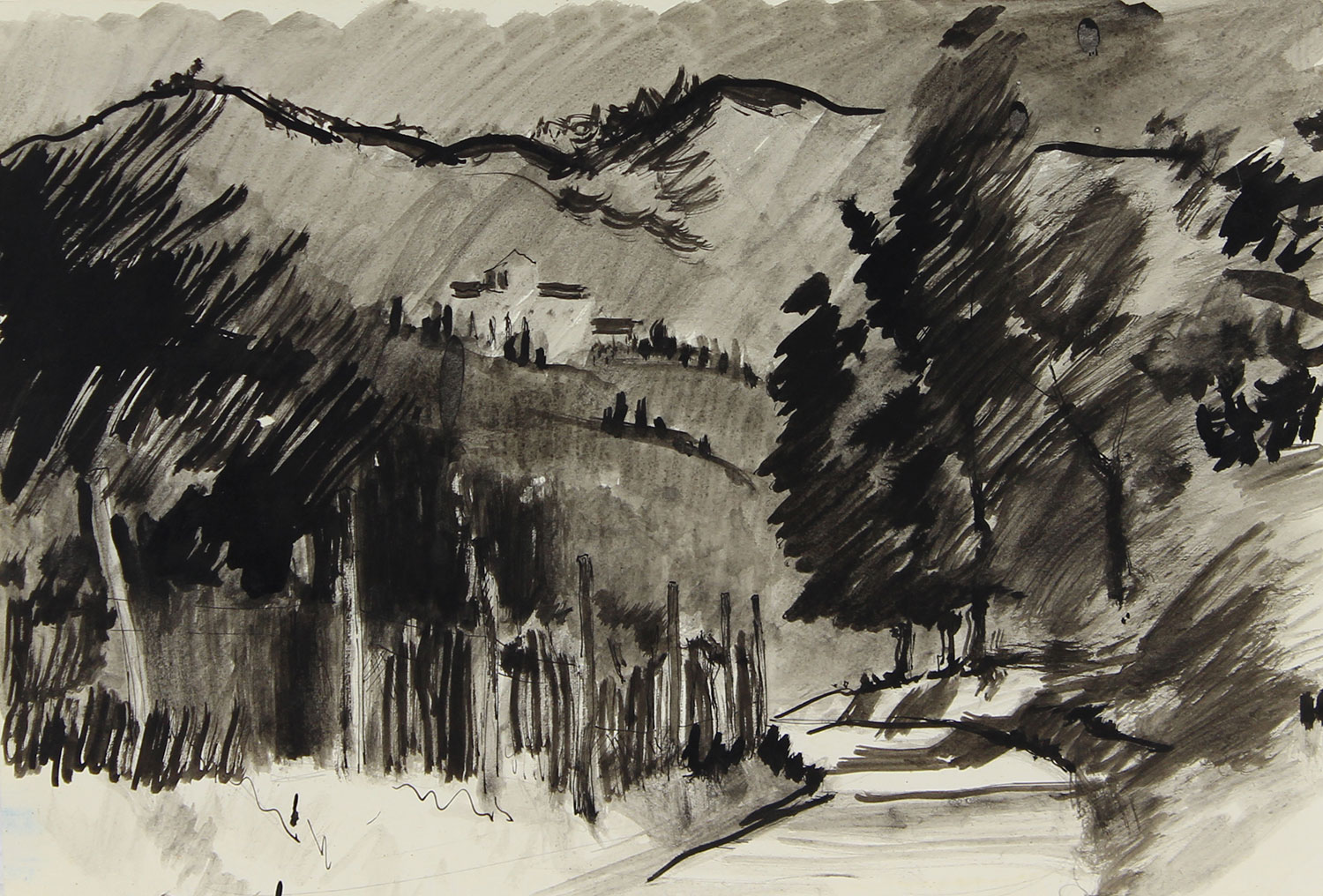 Vagarini Cesare Piano di Mommio china e inchiostro acquerellato su cartoncino, cm. 24x34 firmata e intitolata al retro senza cornice