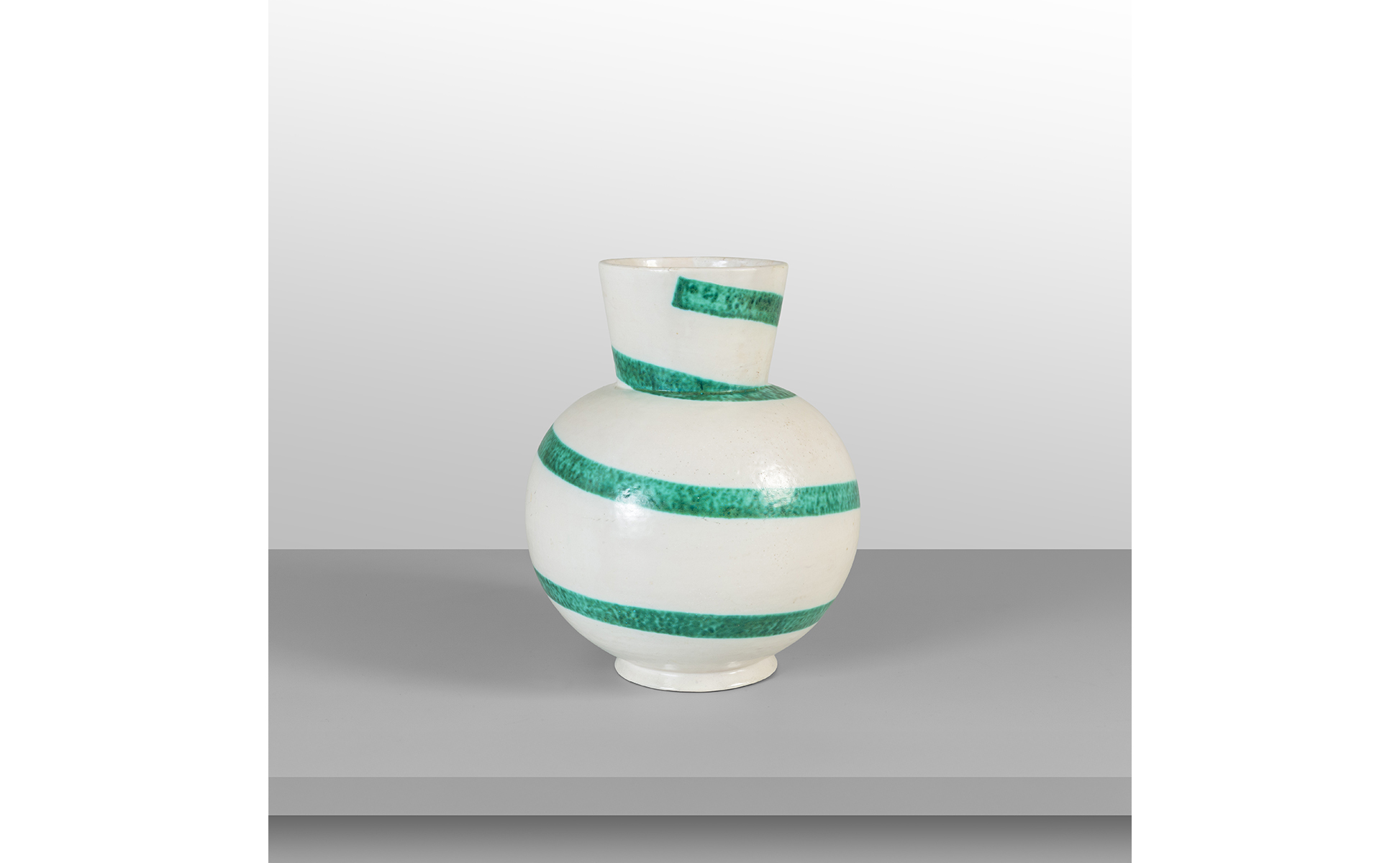 Turned ceramic mat glaze decoration with colored spiral band.
