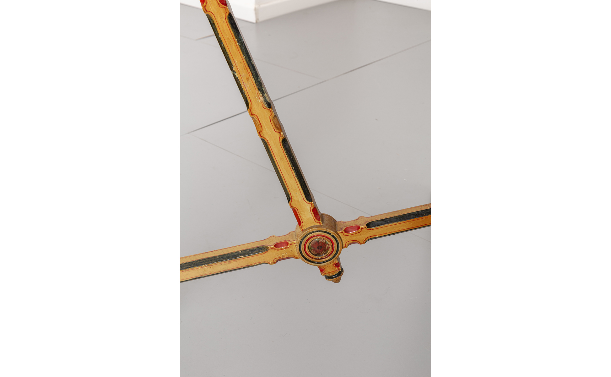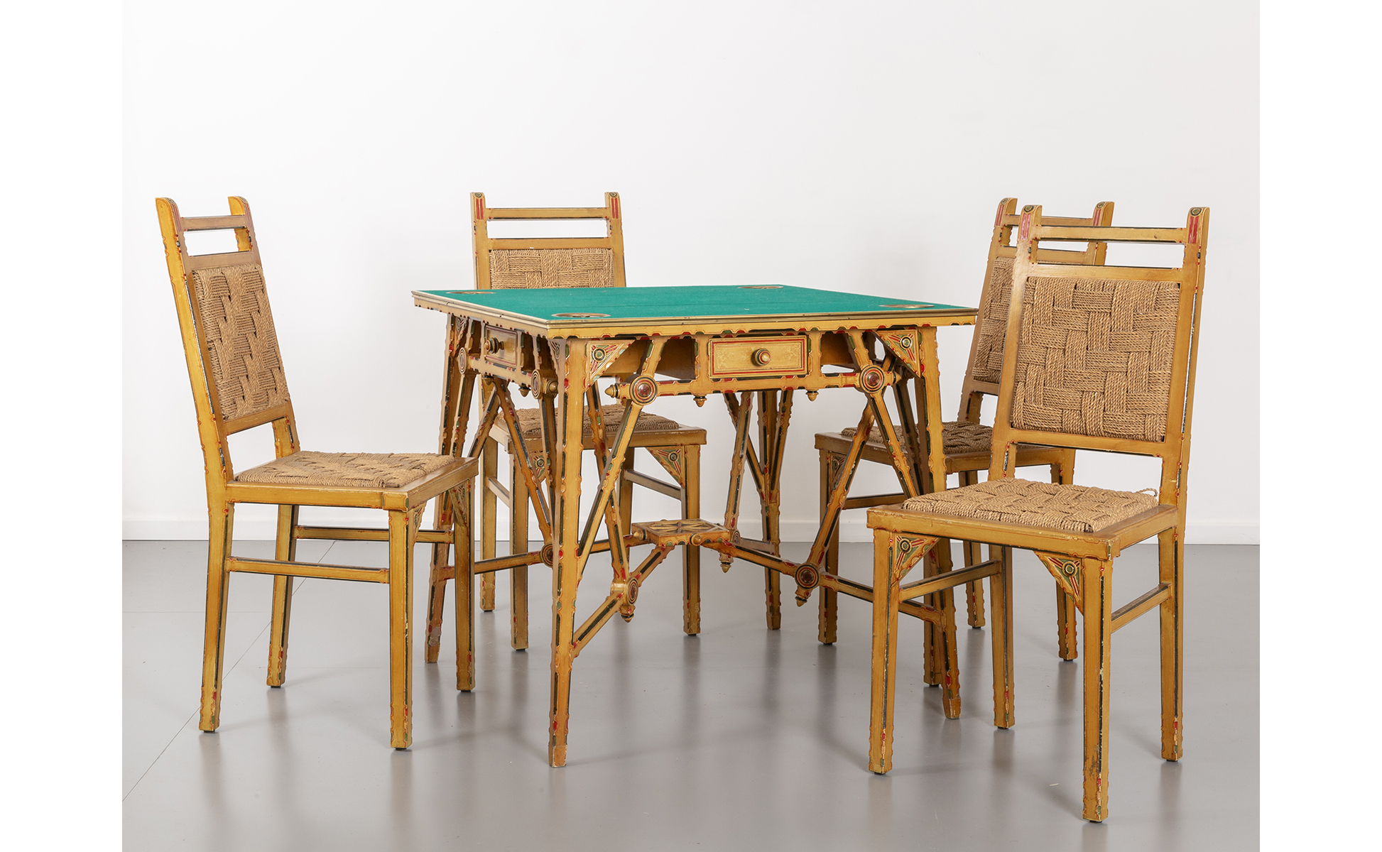 sedie (legno decorato corda): cm 93 (h) x 43 (l) x 47 (p).