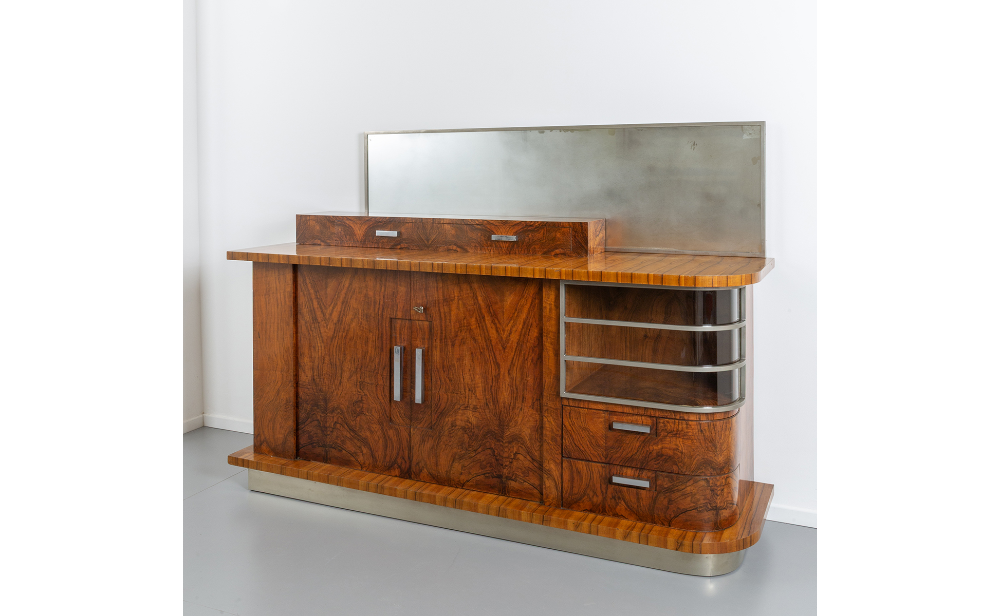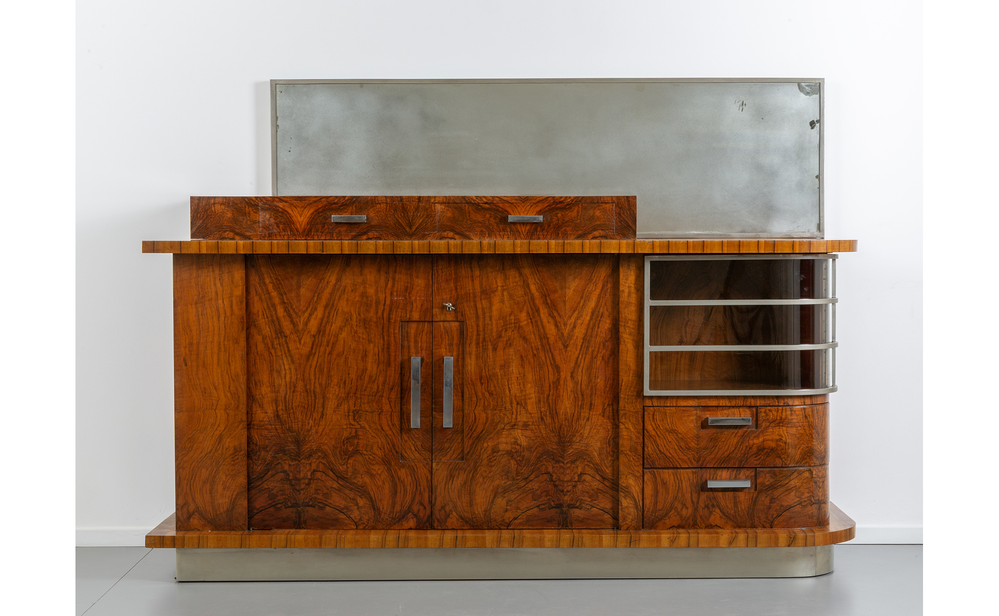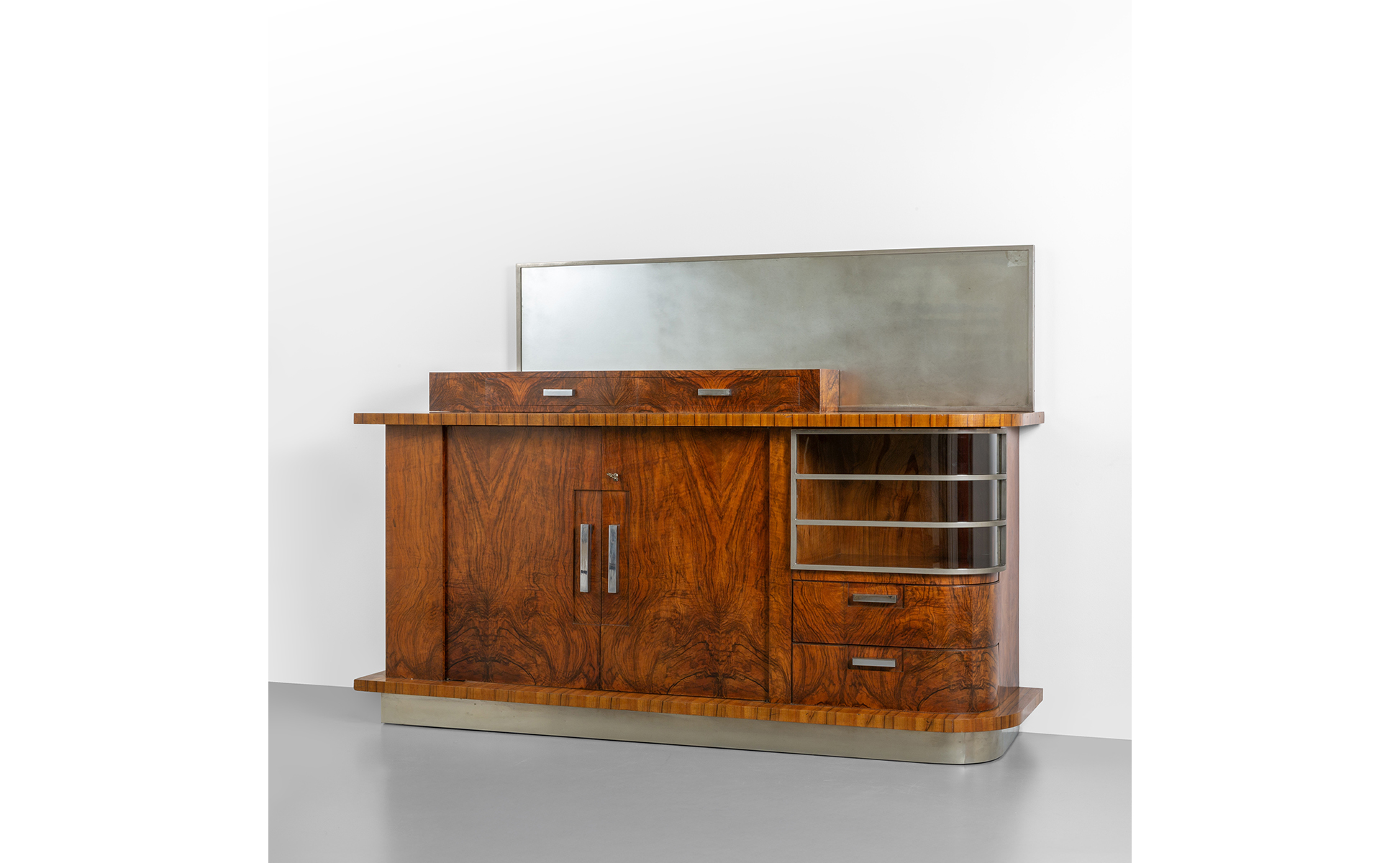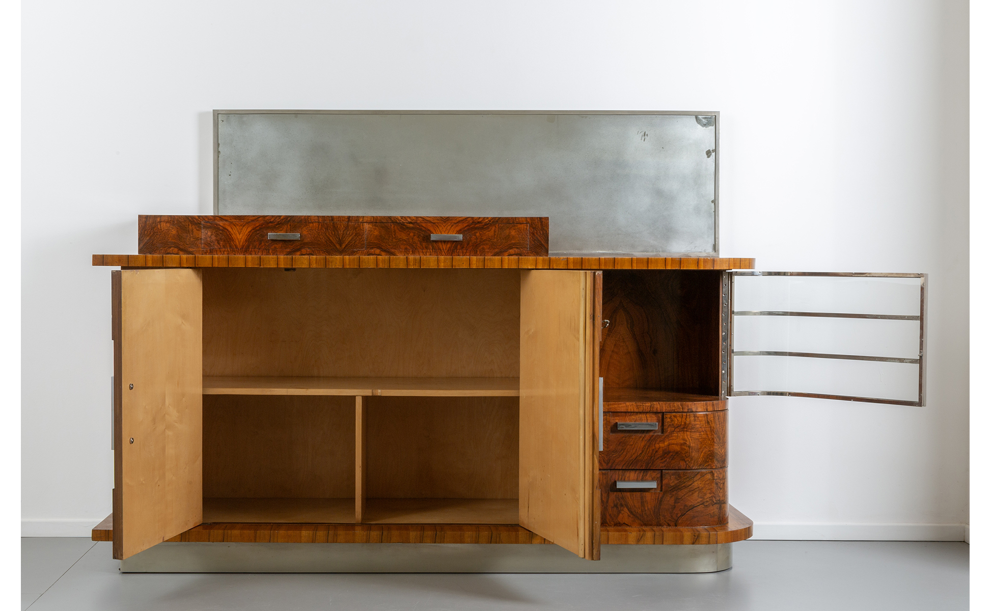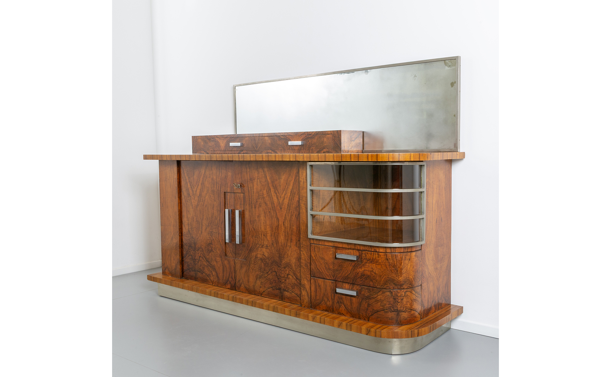 Credenza (radica di noce ottone cromato ottone nichelato vetro):