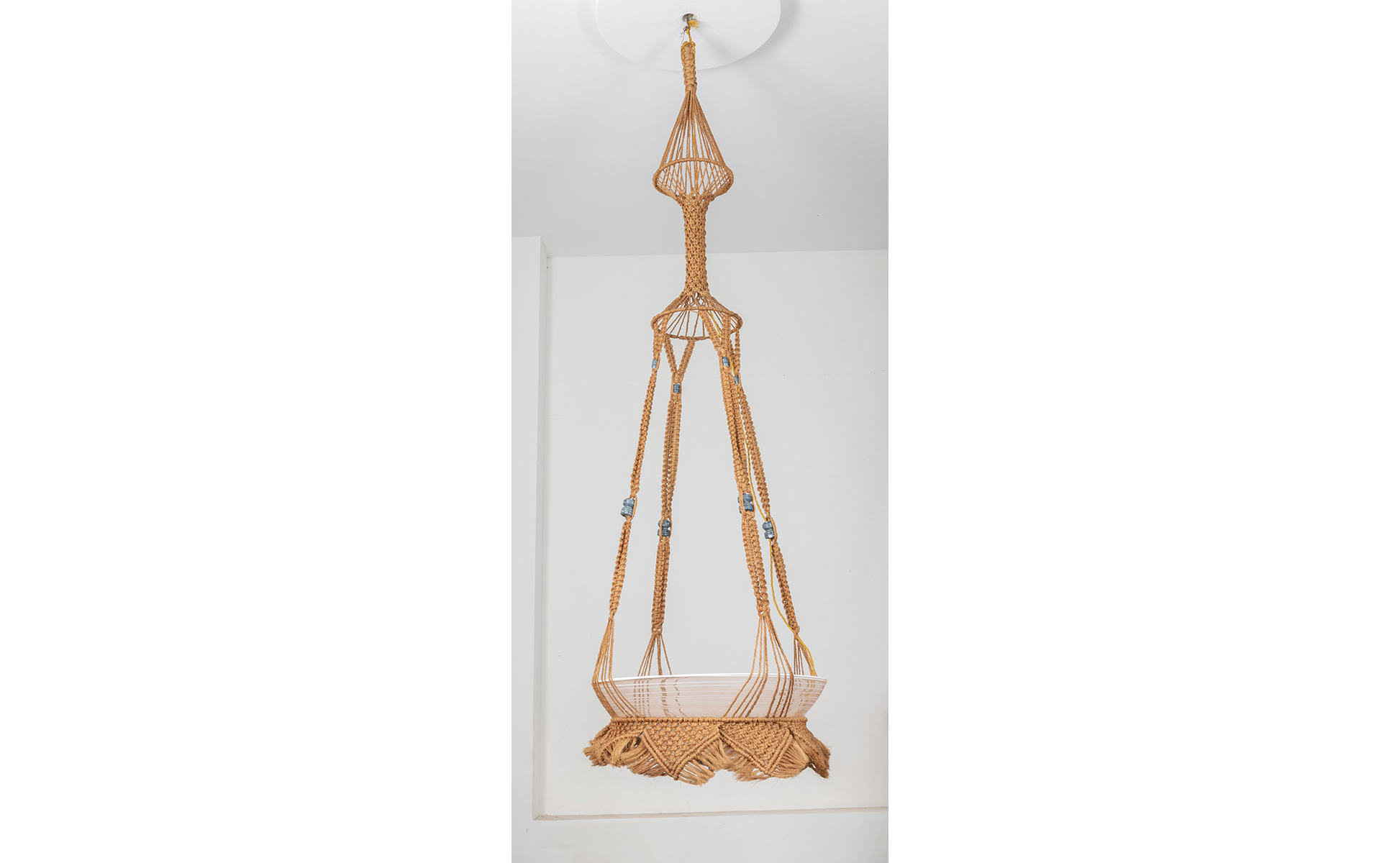 Struttura in corda con inserti in ceramica smaltata