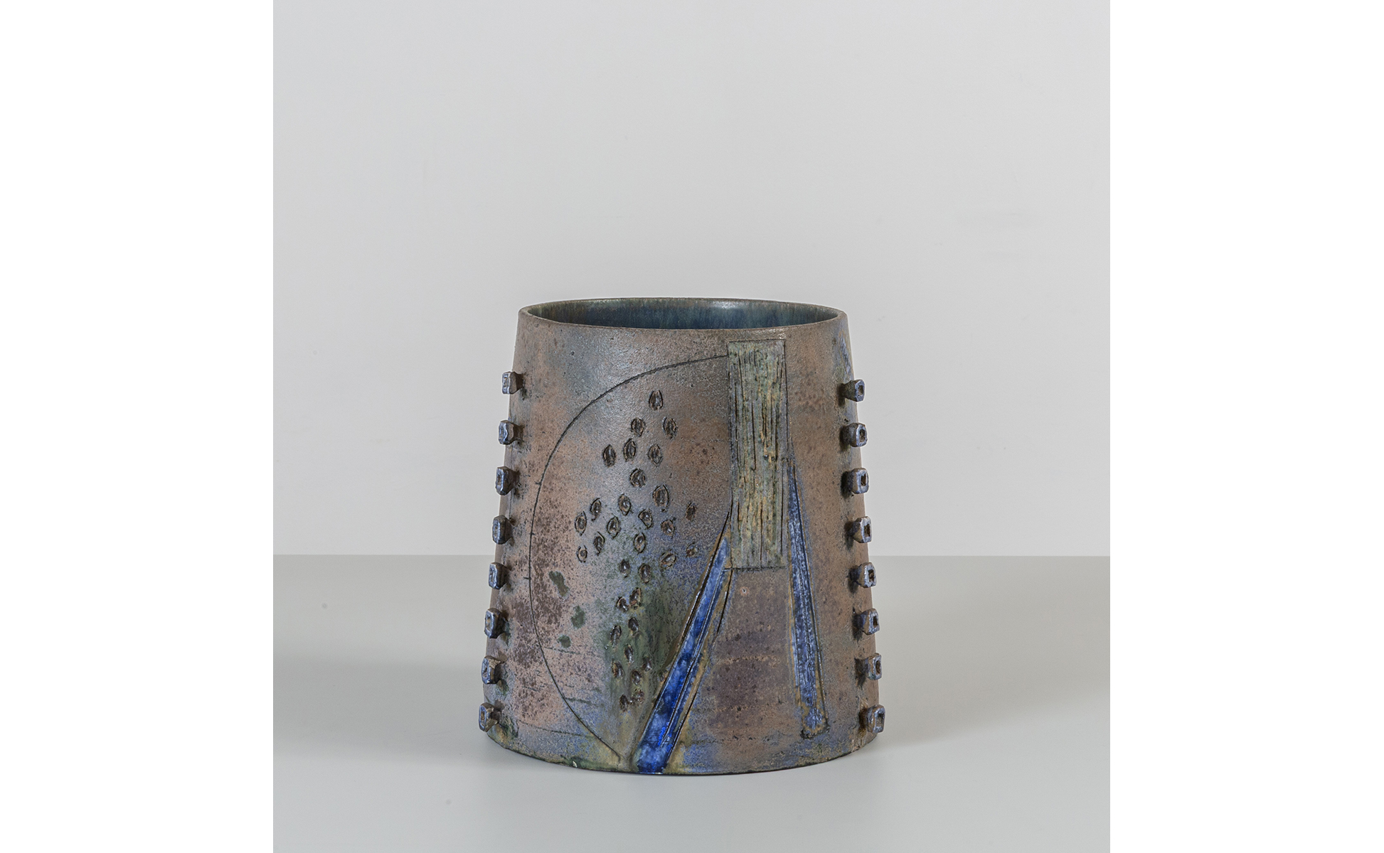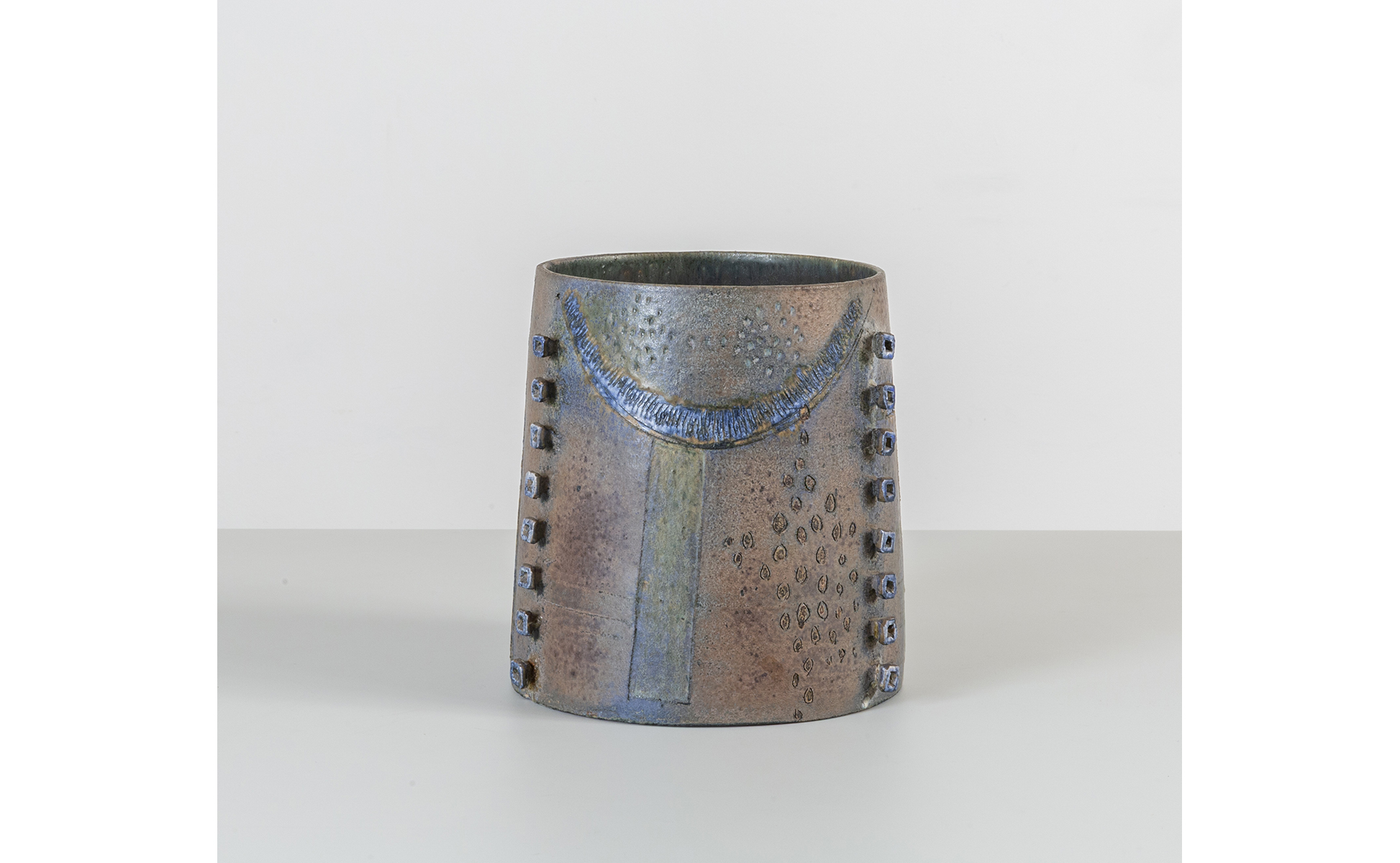 Polychrome glazed terracotta and decorated with engravings and bas-relief elements.
