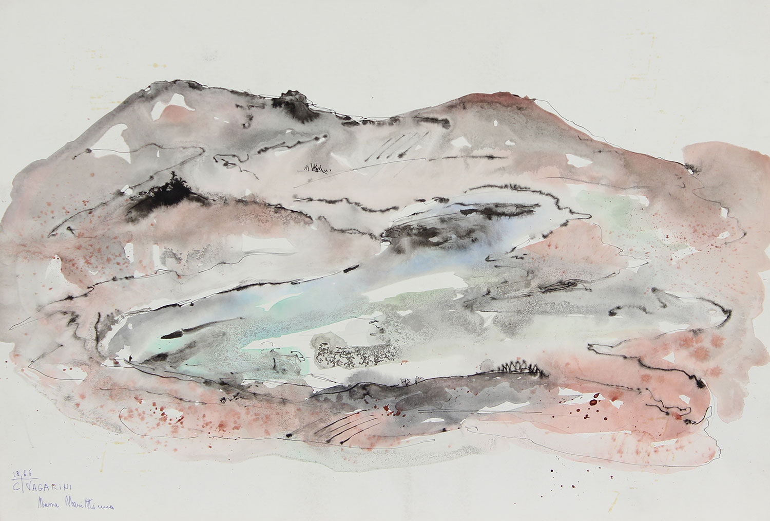 Vagarini Cesare Massa Marittima, 1966 china e inchiostri acquerellati su cartoncino, cm. 35x50 firmata, datata e intitolata in basso a sinistra senza cornice