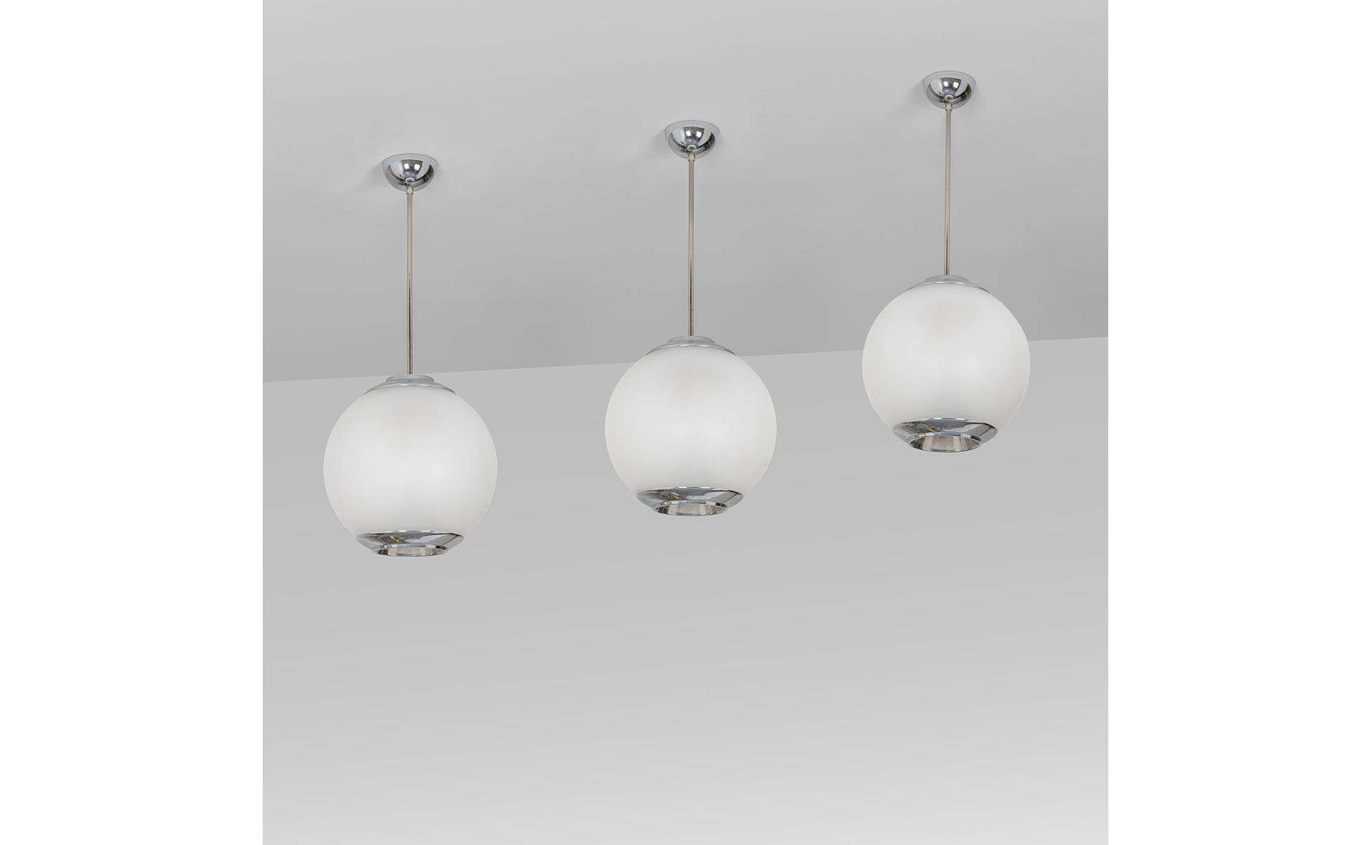 A set of three 'Pallone' (Ls 2) hanging lamps.
