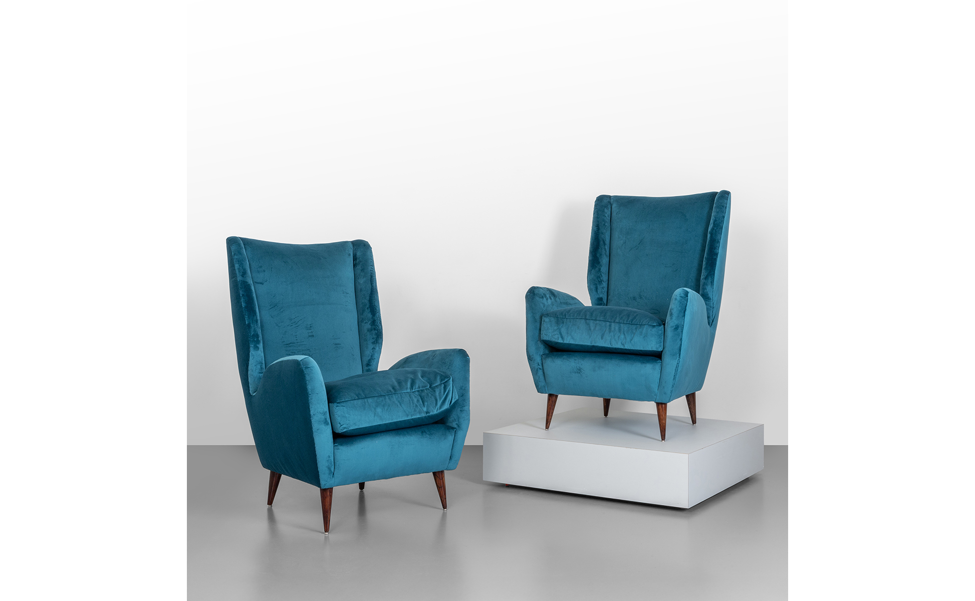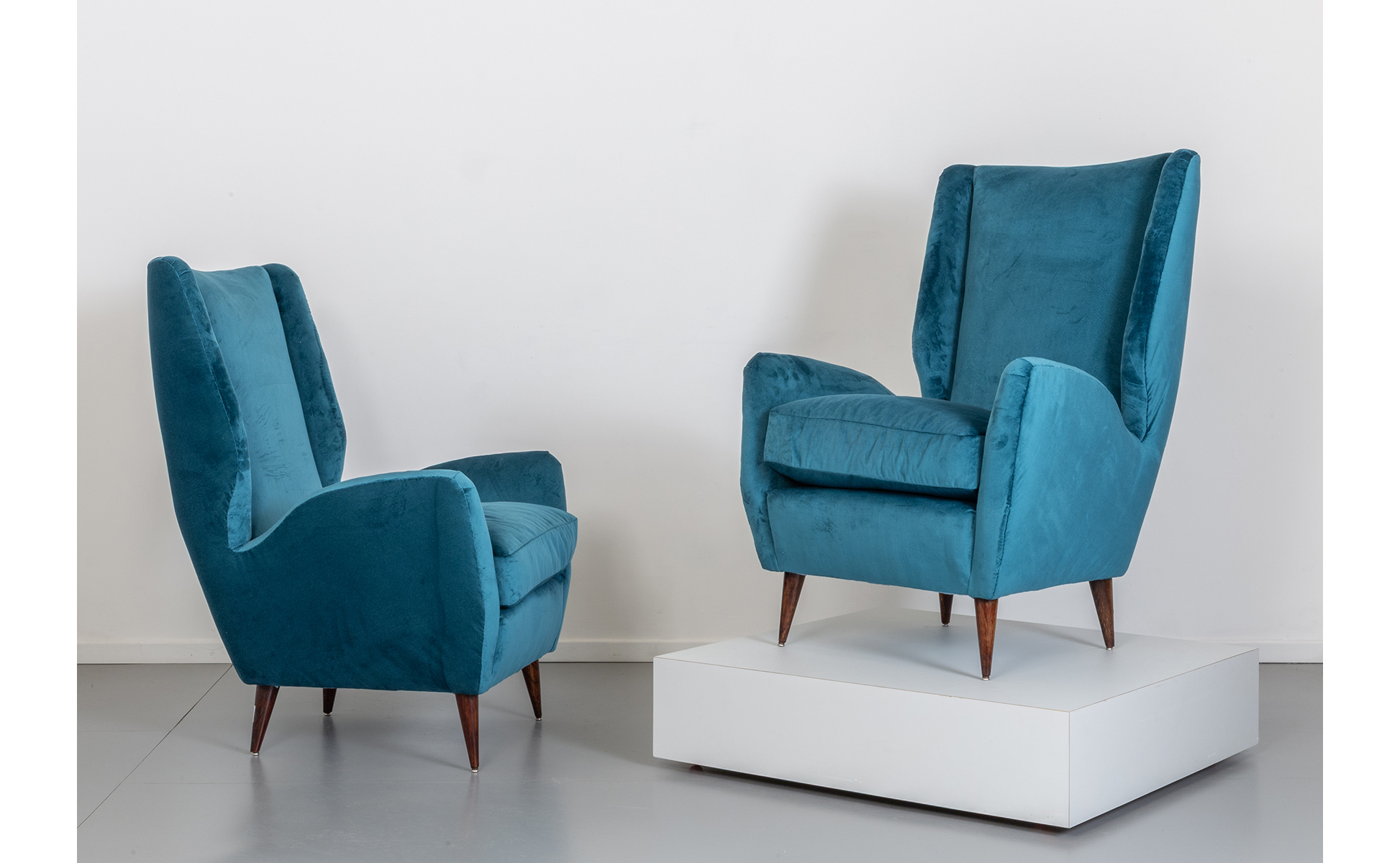 Struttura e gambe in legno con puntali parti imbottite rivestite in velluto.