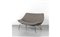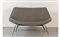 Support in painted steel rod curved masonite shell padded and covered in fabric.