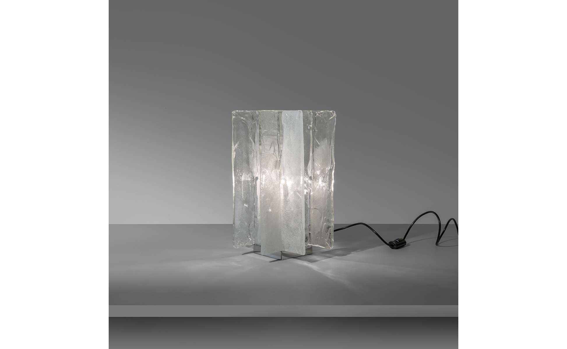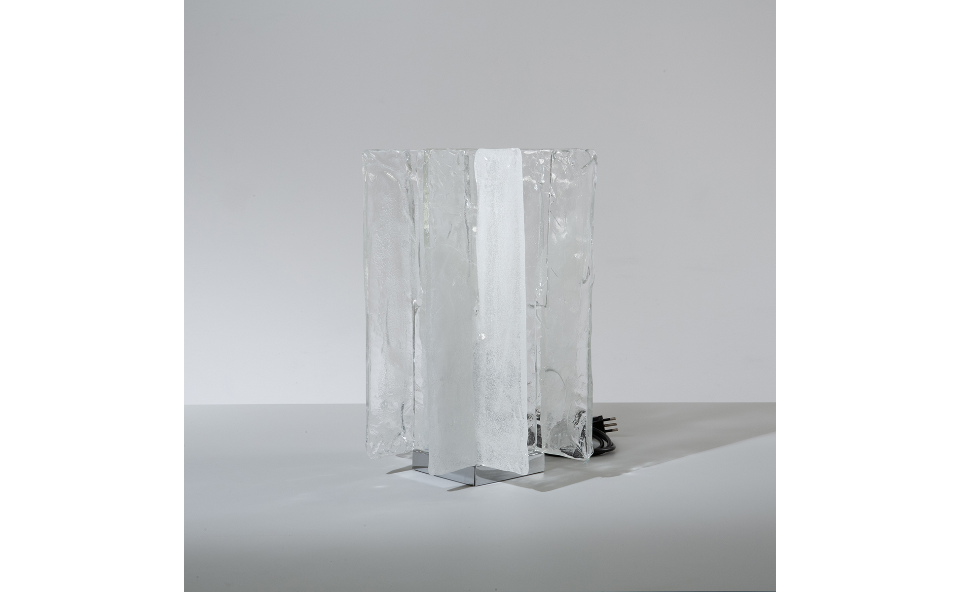 Vetro in piastra acciaio cromato.
