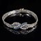Bracciale in oro bianco, realizzato come un nastro morbido in oro inciso e levigato centrato da elemento a nastro decorato con piccoli zaffiri blu sfaccettati. Punzone "750" Lunghezza cm 19. Peso complessivo 25,8 grammi.