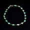 Collana in oro giallo, realizzata ad una fila a tutto giro di cabochon di turchesi ovali. Lunghezza 42 cm. Peso complessivo 16 grammi.