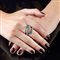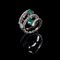 Anello in oro bianco, realizzato come un contrarié snodato decorato in diamanti e gemme verdi. Punzone "750". Peso complessivo 14,5 grammi.