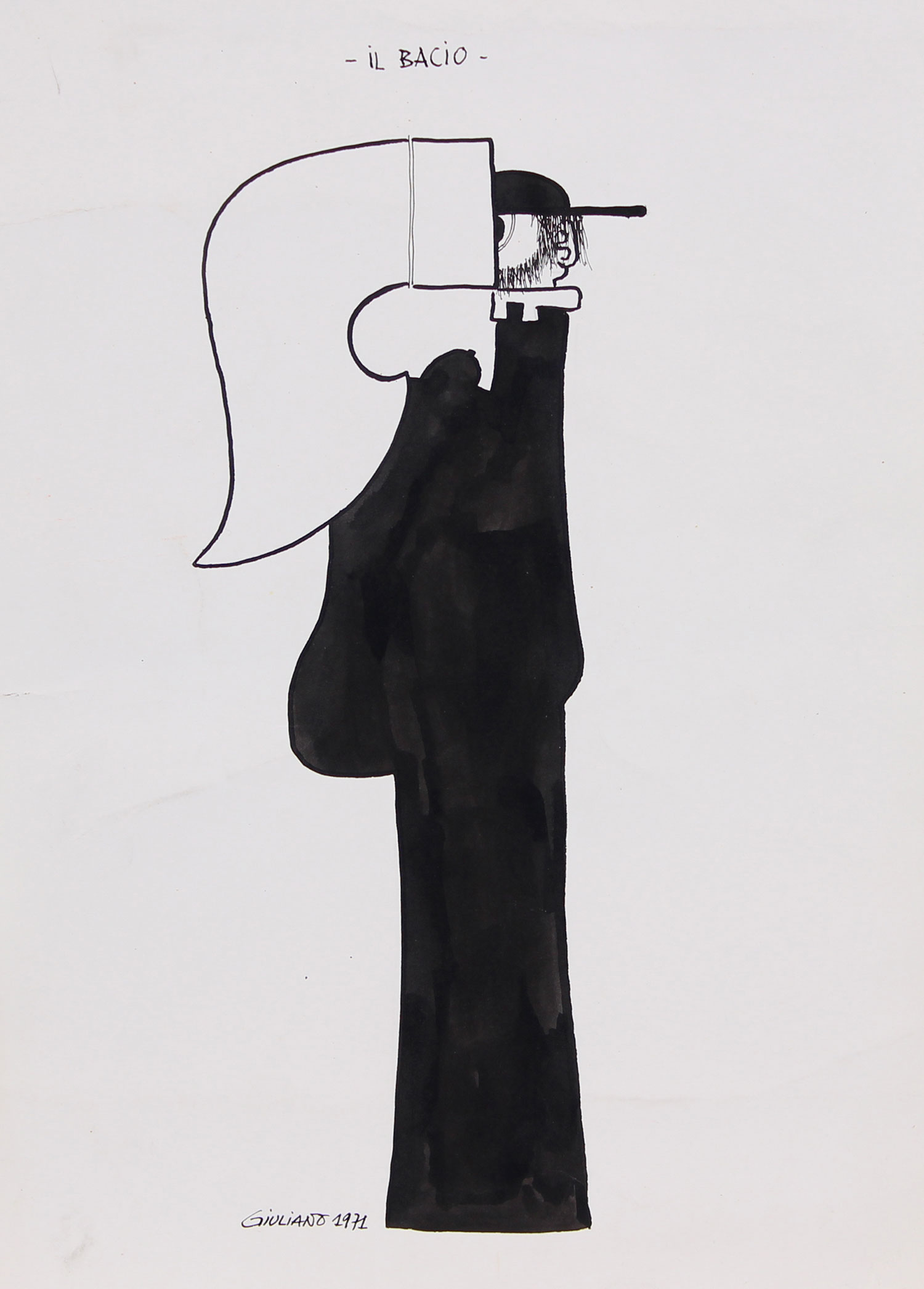 Rossetti Giuliano Il Bacio, 1971 china su carta, cm. 35,5x25 firmata e datata...