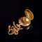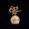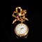 Spilla in oro giallo decorata con perla; reca in sospensione un orologio con retro dipinto. Peso complessivo 20,7 grammi.