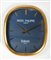 Orologio da parete, cassa ellittica in ottone dorato, al retro adesivo Inducta del 9 Marzo 1989. Quadrante blu, firmato con logo della Maison ed indicazione del concessionario Gioielleria Baleani. Indici e lancette a bastone, movimento al quarzo. Reca numero di serie 104310. Misure 50 x 42 cm.
