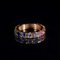 Anello in oro rosa, realizzato come una fede girodito di zaffiri multicolori "Rainbow" rotondi sfaccettati per una caratura stimata di 4.70 ct. Punzone "750". Peso complessivo 7 grammi.