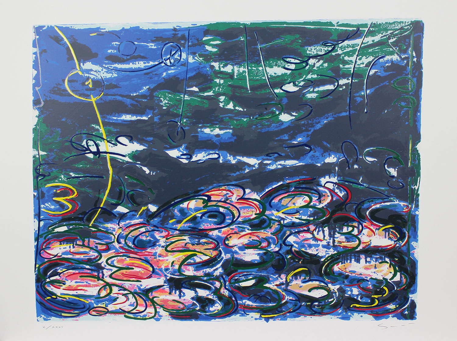 Schifano Mario Gigli d'acqua serigrafia materica su carta Fabriano, cm. 70x100, es. X/XXXV firmata in basso a destra, timbro a secco Mastrogiacomo Editore Padova in basso a sinistra senza cornice