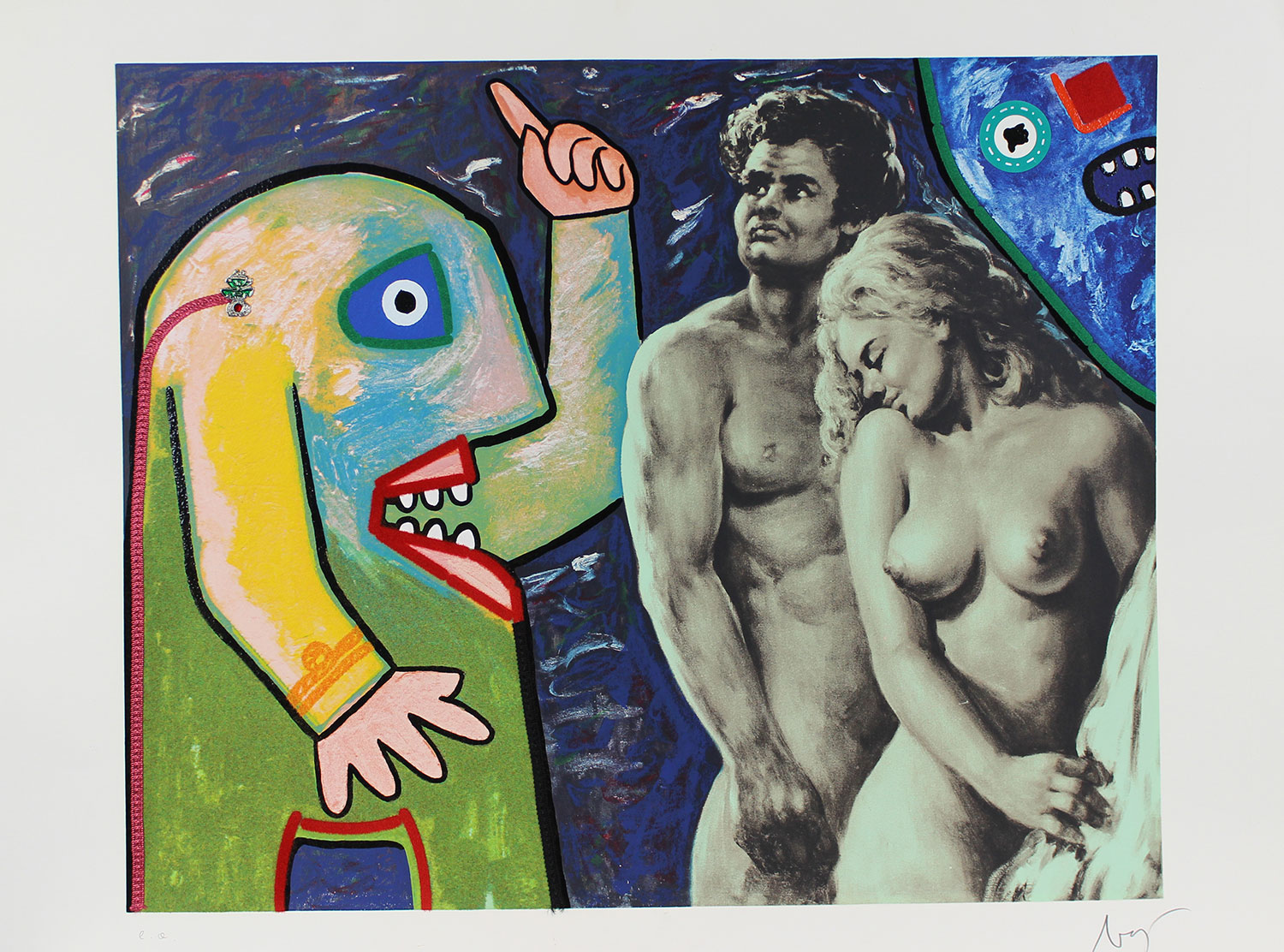 Baj Enrico Contaminazioni serigrafia e applicazioni su cartoncino, cm. 70x100, es. E.A. firmata in basso a destra, timbro a secco Mastrogiacomo Editore di Padova in basso a destra senza cornice