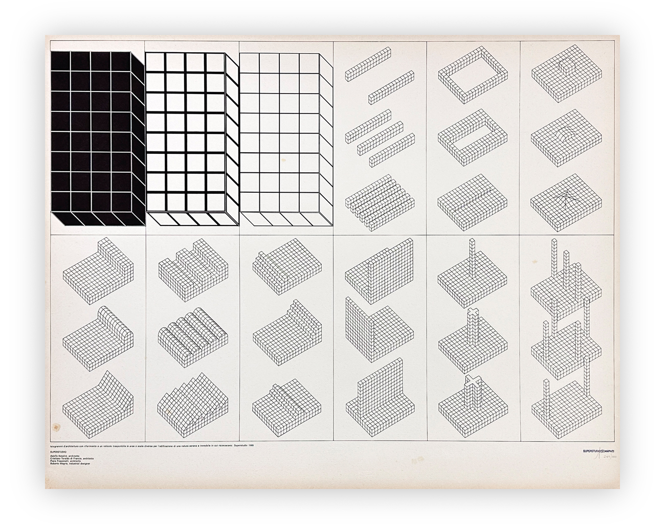 SUPERSTUDIO GROUP (1966-1986) - Istogrammi d'architettura con riferimento a un reticolo trasponibile in aree o scale diverse per l'edificazione di una natura serena e immobile in cui riconoscersi, 1969