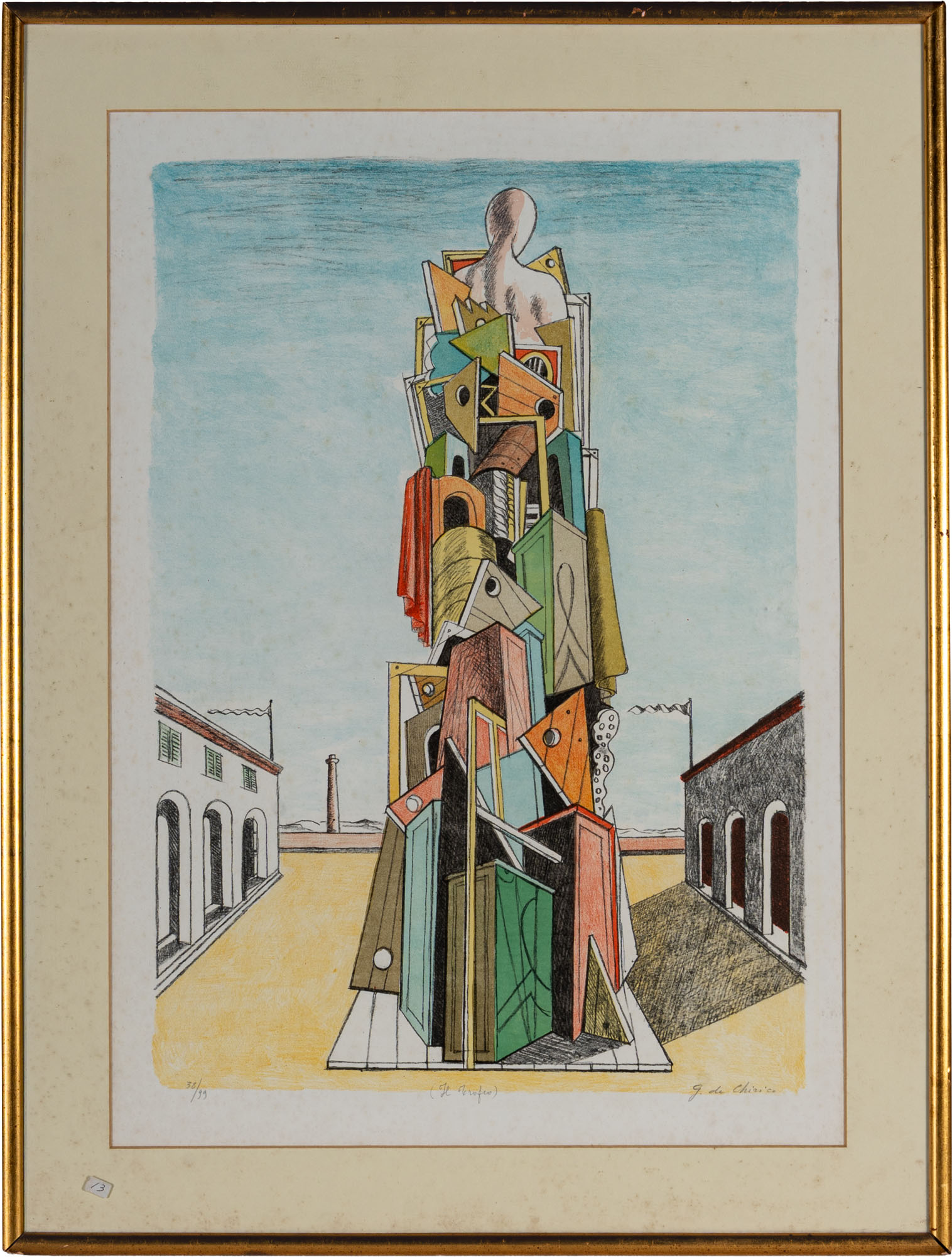 GIORGIO DE CHIRICO(1888 - 1978)Il trofeoLitografia, es. 38/9970 x 50 cmFirmata in basso a destra, titolata in basso al centro e numerata in basso a sinistraPROVENIENZA:Collezione privata, Vercelli