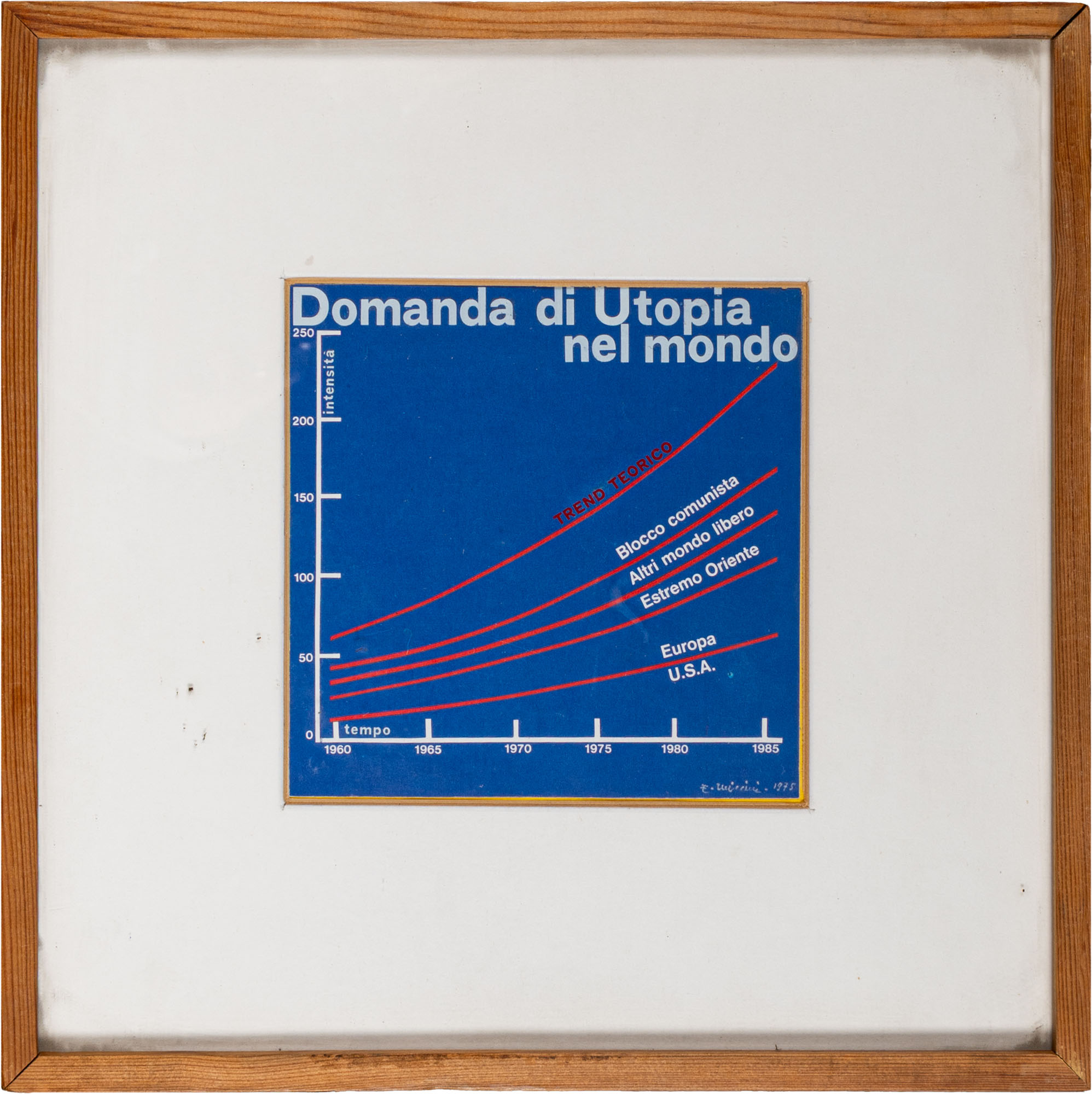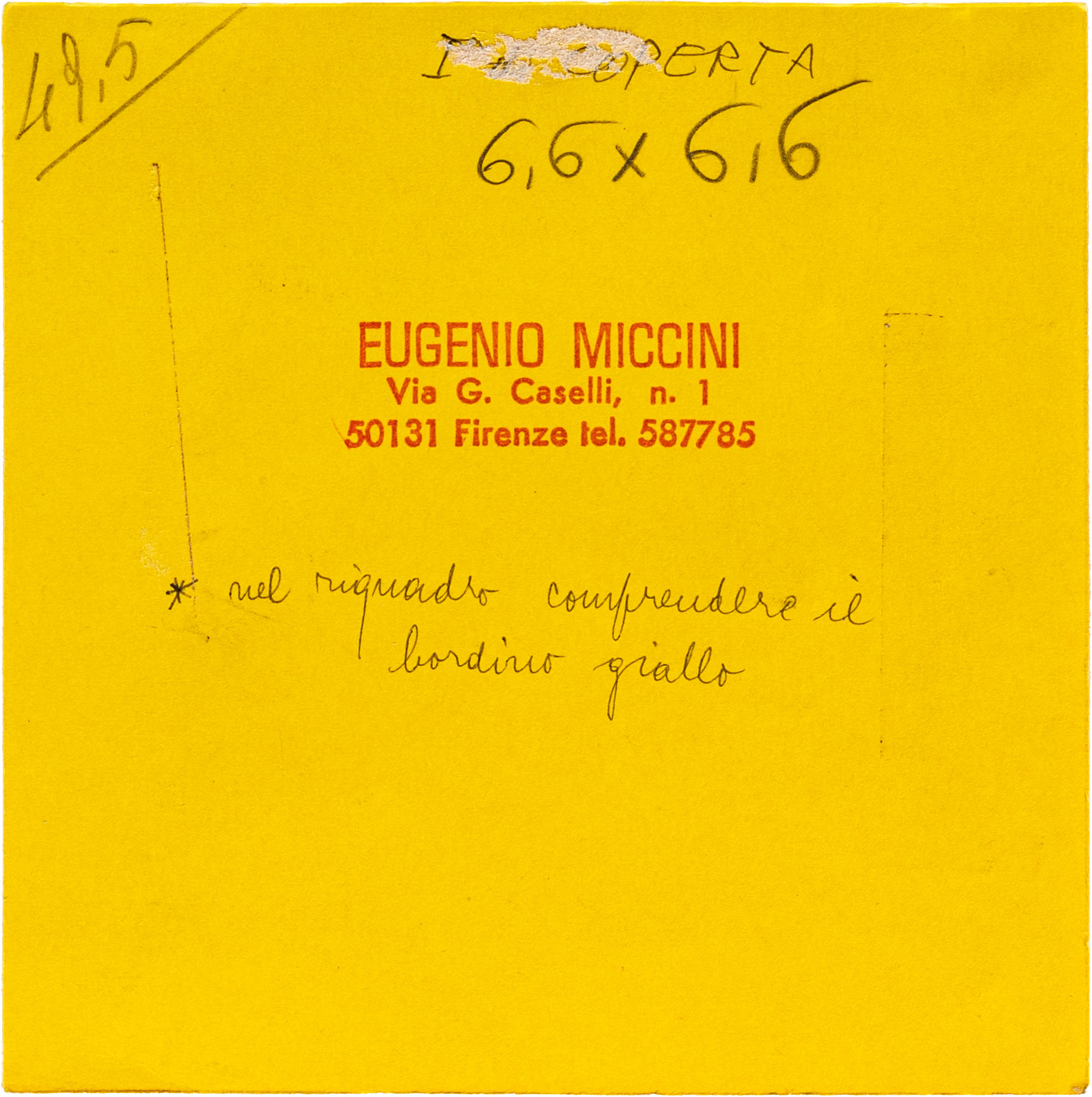 EUGENIO MICCINI(1925 - 2007)Domanda di utopia nel mondo1975Stampa serigrafica su carta applicata su cartoncino13,2 x 13,2 cmFirmata e datata in basso a destraTimbro dell'artista al retroPROVENIENZA:Collezione privata, Milano