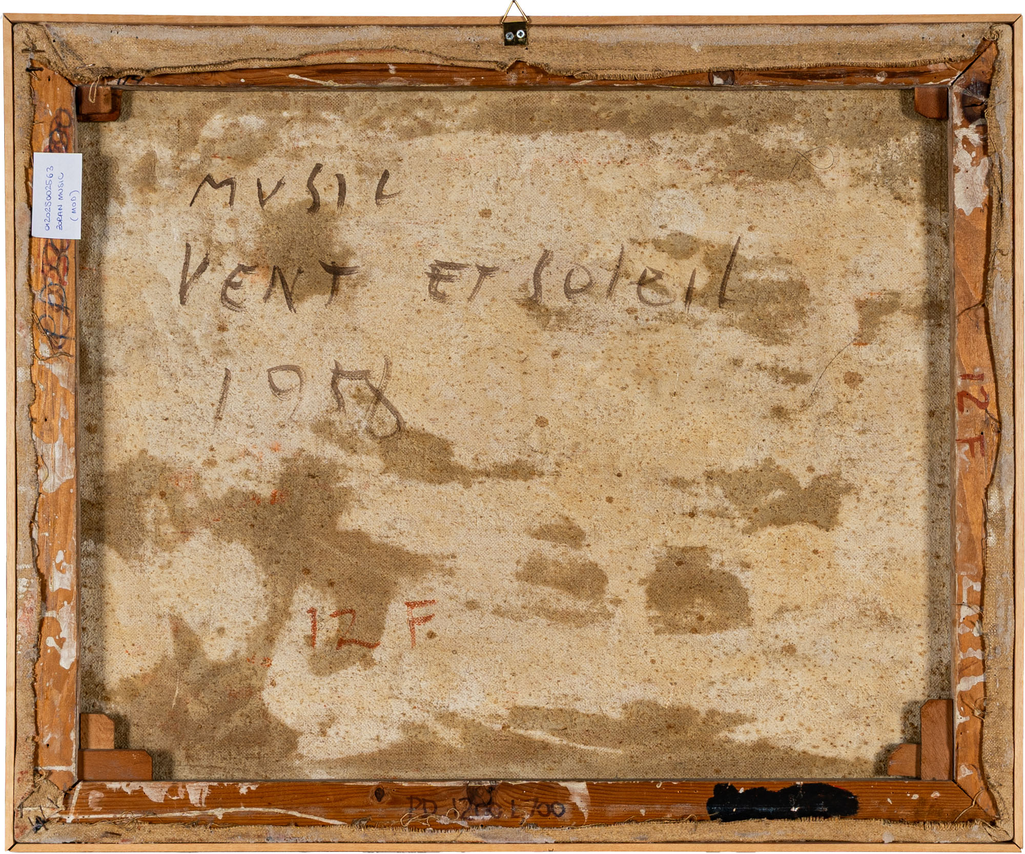 ZORAN MUSIC(1909 - 2005)Vent et soleil1958Olio su tela49,8 x 61,2 cmFirmato e datato in basso al centroFirma, data e titolo al retroOpera accompagnata da autentica su fotografia a cura della Galleria d'Arte Contini, MestrePROVENIENZA:Collezione privata, Milano