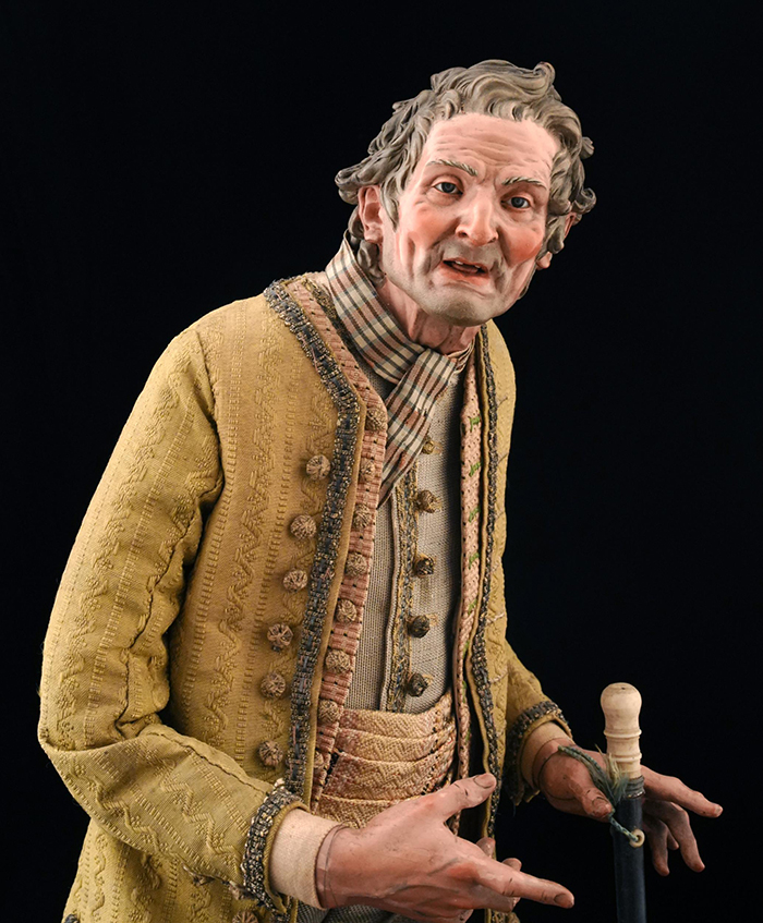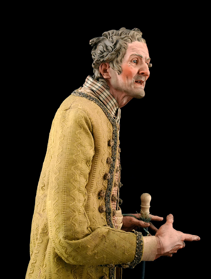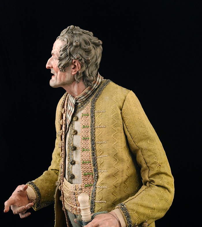 Vecchio di Giuseppe de Luca h cm 41 accessori: bastone Napoli XVIII - XIX secolo Provenienza: Coll.. E. Catello (inv. 264), Napoli; Col l. R. Catello, NApoli; coll. privata, Napoli Esposizioni: Mostra della scultura napoletana del ‘700 nell’arte del presepe” Basilica di San Marco in Palazzo Venezia Roma 1950; Figure presepiali napoletane dal secolo XIV al secolo XVIII Palazzo Reale, Napoli Ottobre 1970 - Gennaio 1971; La Cantata dei Pastori. Realtà e fantasia nell’arte presepiale del Settecento a Napoli, Torino, I Portici del Lingotto Spazio Mostre, Novembre 1996 - Gennaio 1997; Napoli- Capolavori del '700, 2019