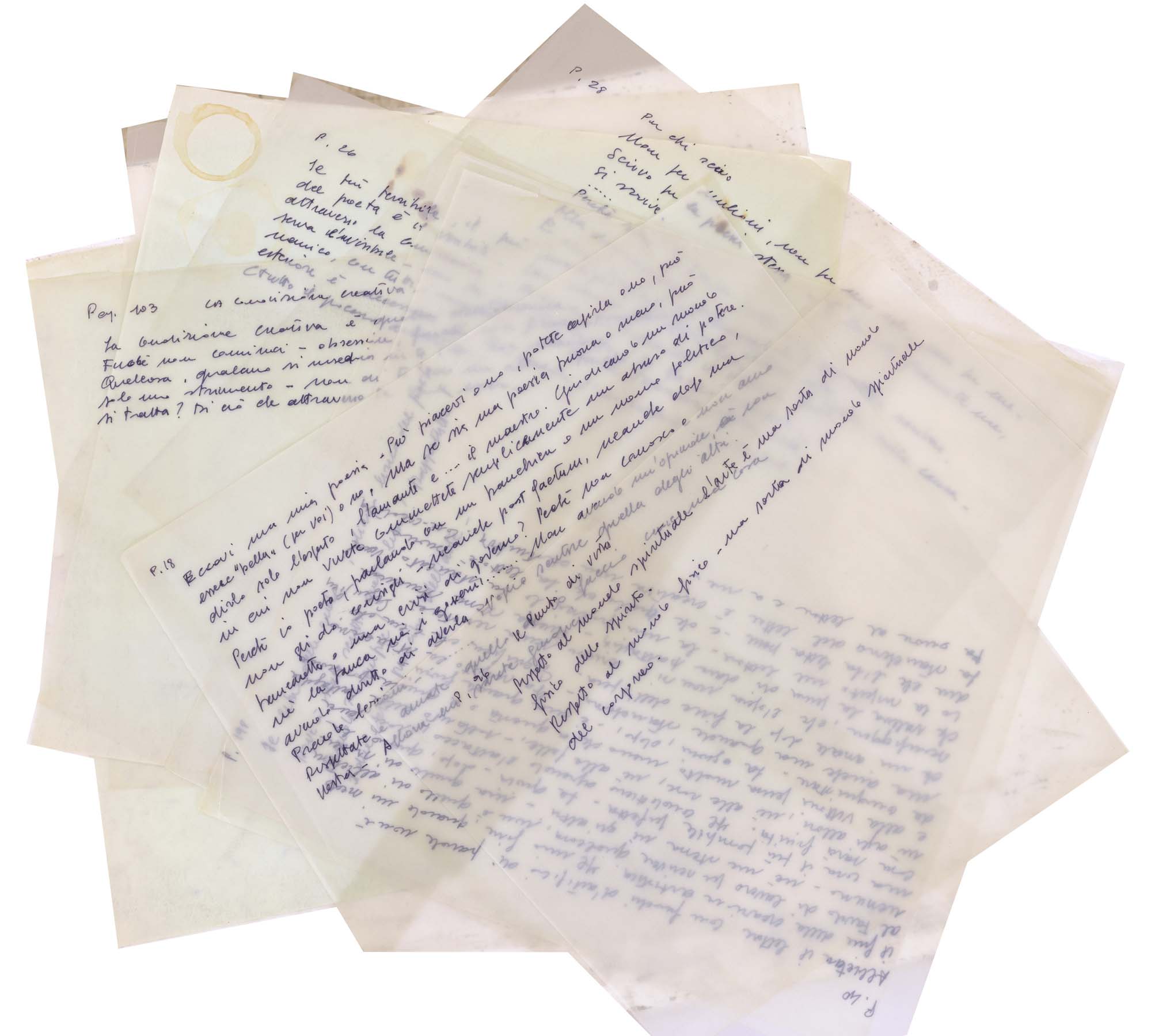 il libro contiene scritti/poesie su carta da lucido di Marina Cvetaeva