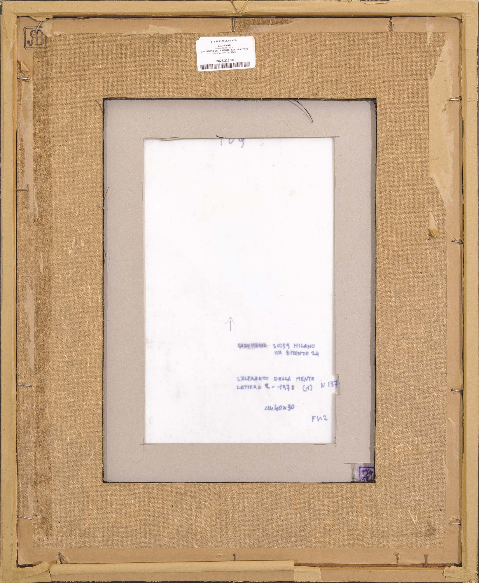 autentica a cura dell'Archivio Dadamaino con relativo nr. di rep. su foto