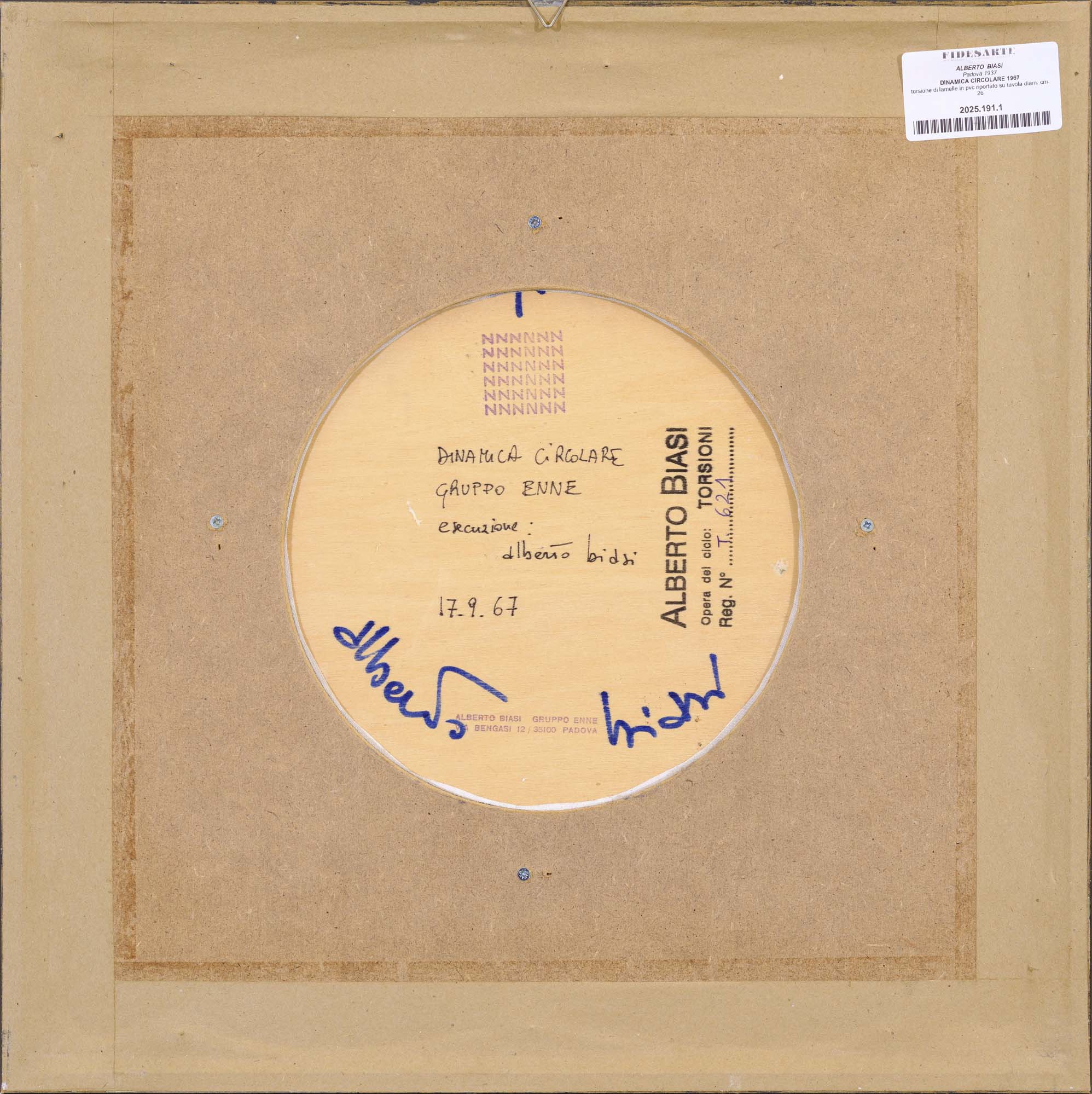 autentica dell'Autore su certificato di autenticità a cura dell'Archivio Alberto Biasi con relativo nr. di rep. su foto