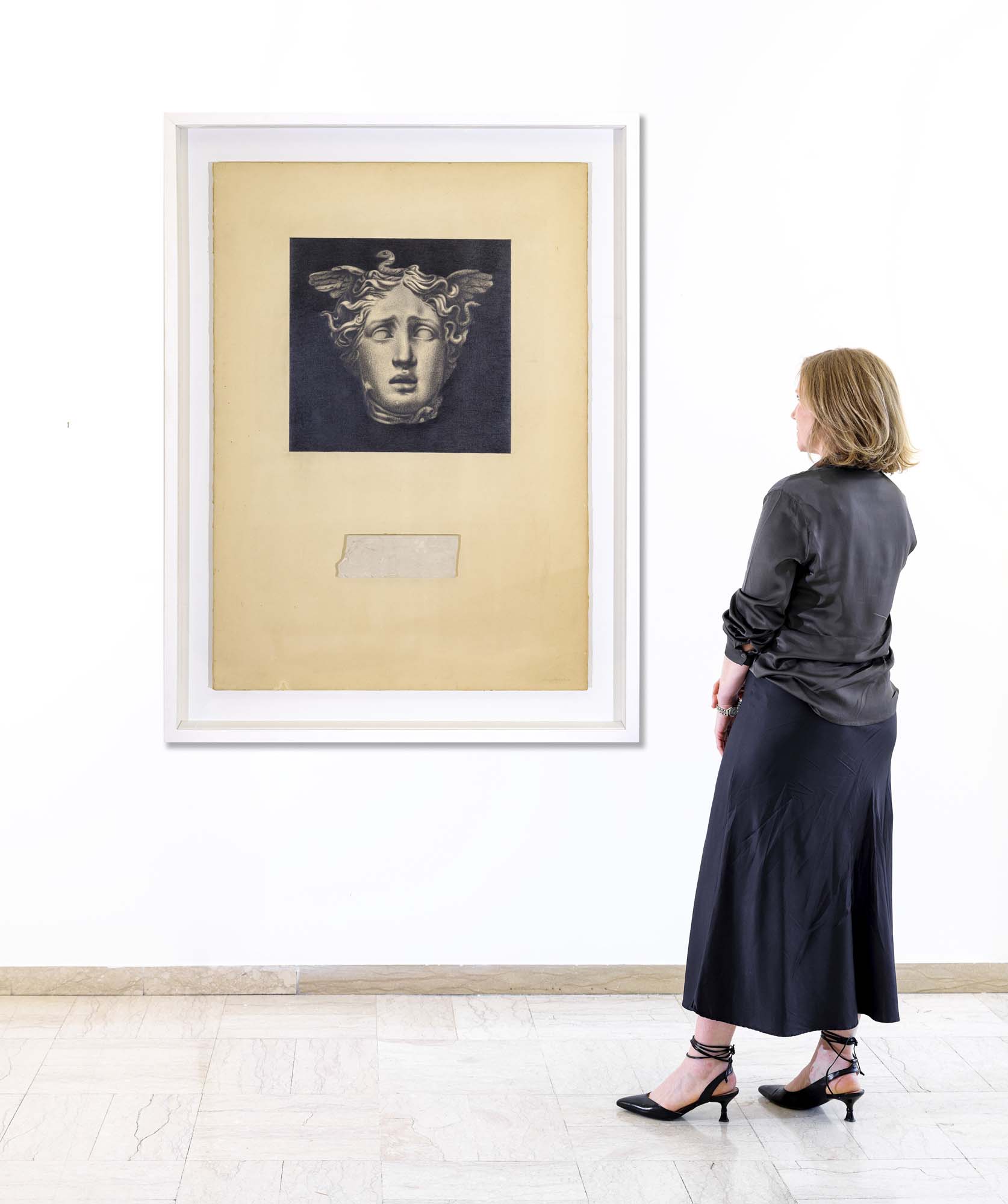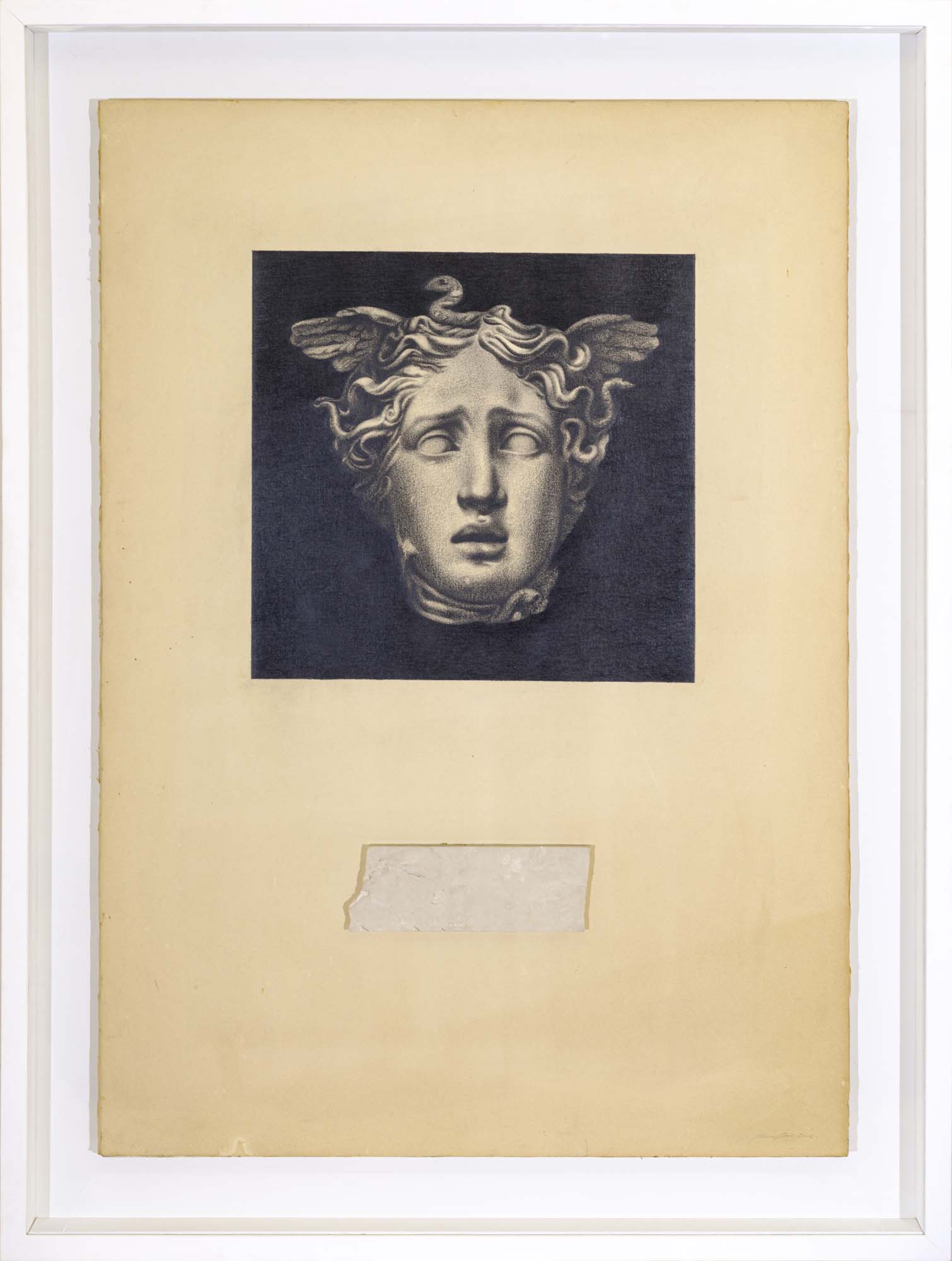 grafite su carta riportata su tavola + marmo cm.100x70
