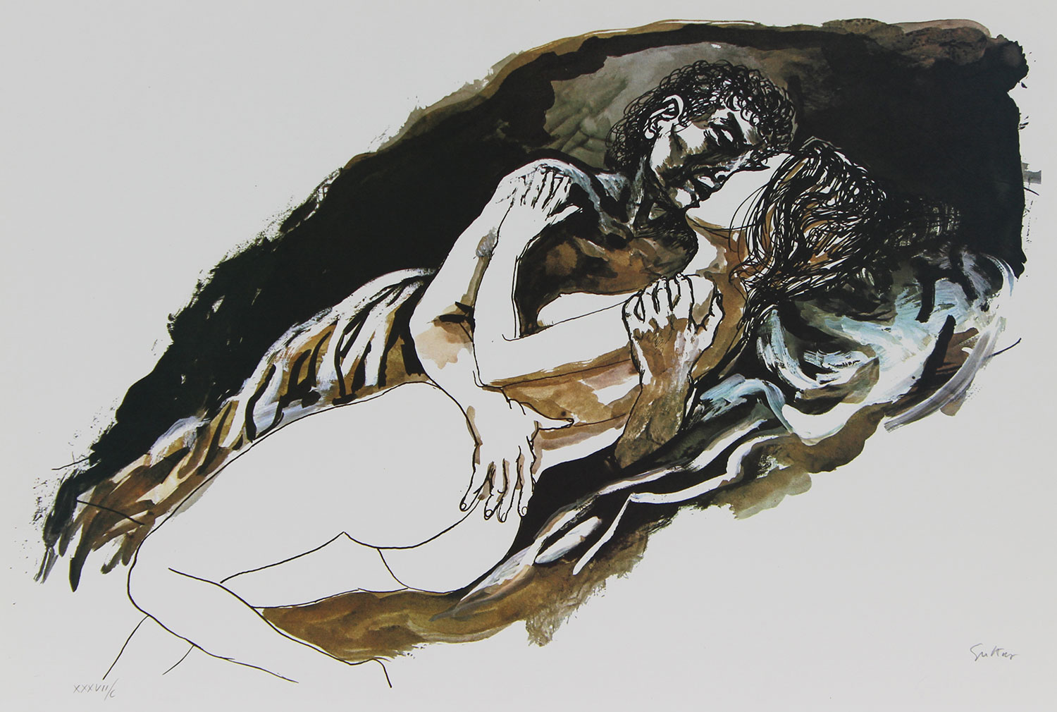 Guttuso Renato Gli Amanti litografia su carta Fabriano, cm. 35x50, es....