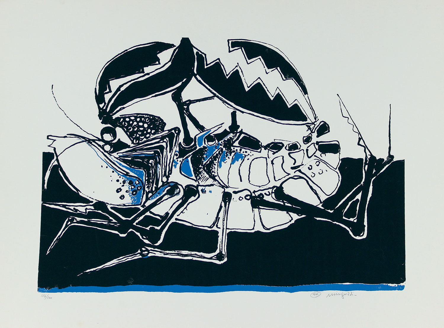 Minguzzi Luciano Senza titolo litografia su carta Fabriano, cm. 56x76, es. 106/200 firmata in basso a destra, timbro a secco Comune di Milano Ripartizione Cultura in alto a destra