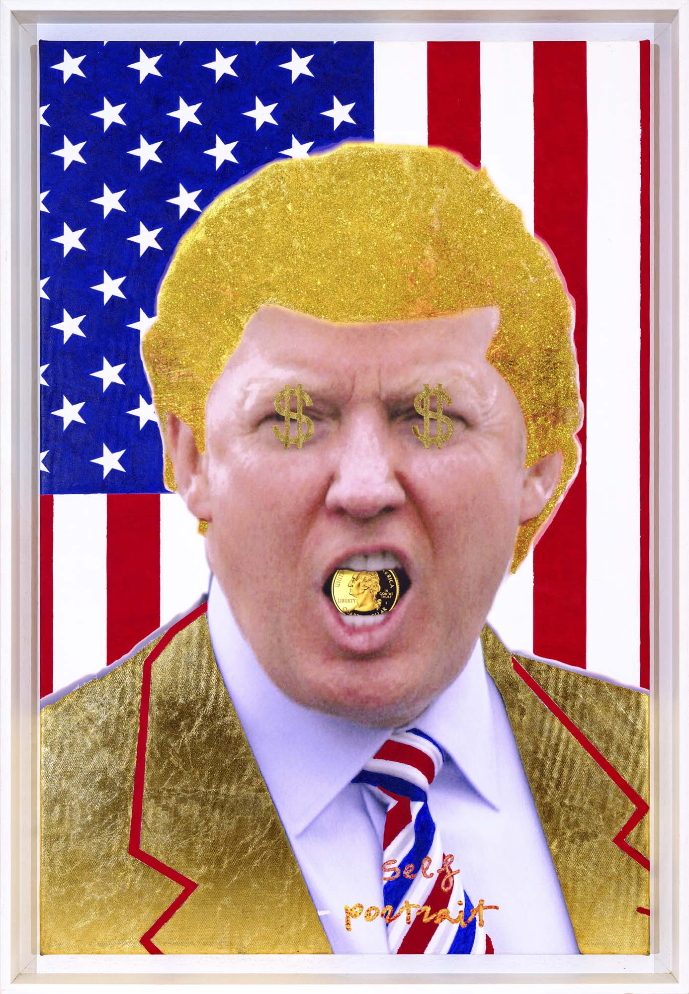 glitter, stampa, acrilici e foglia d'oro su tela cm. 75x50