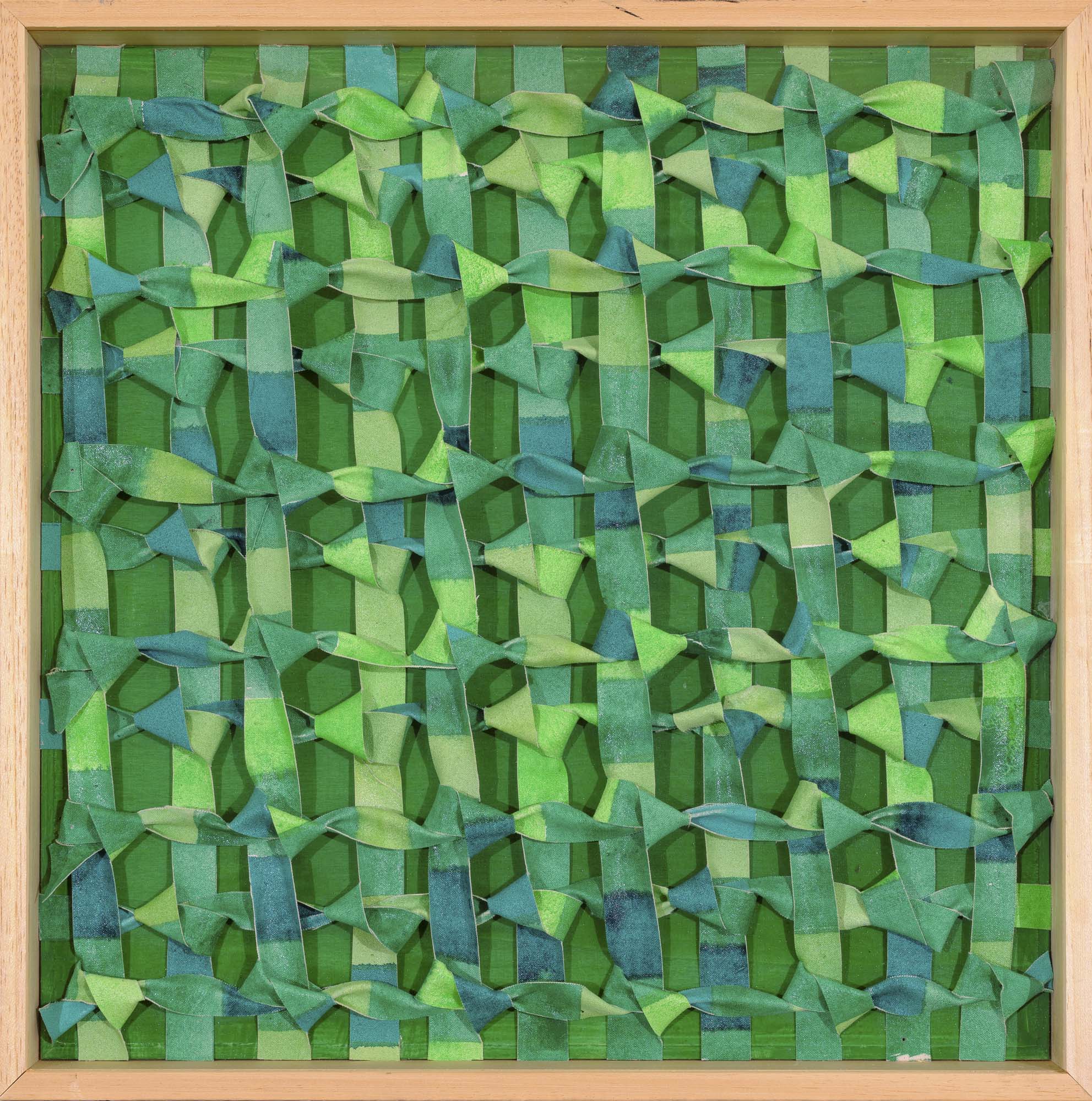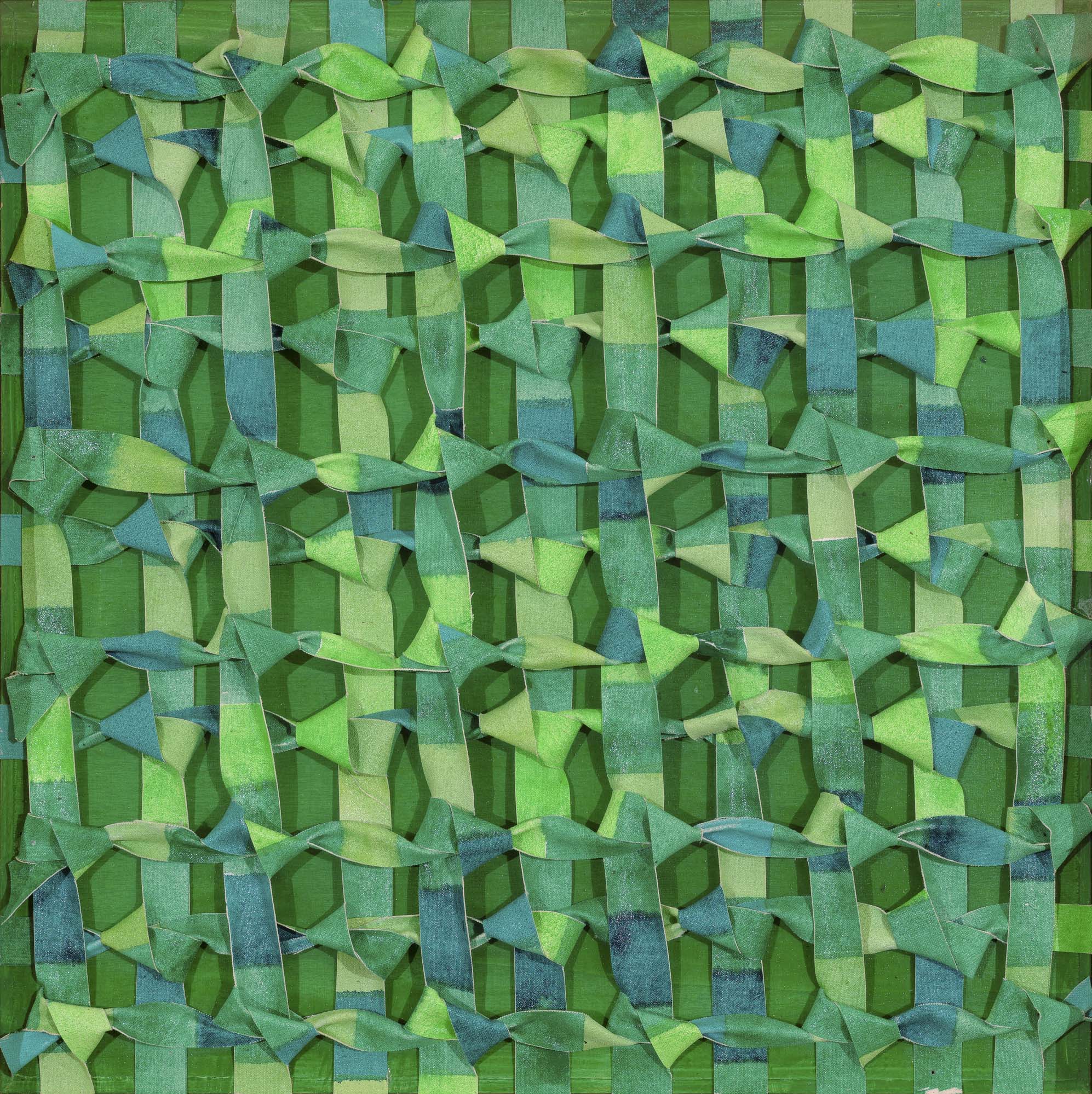tela dipinta, tagliata e annodata su tavola cm. 36x36