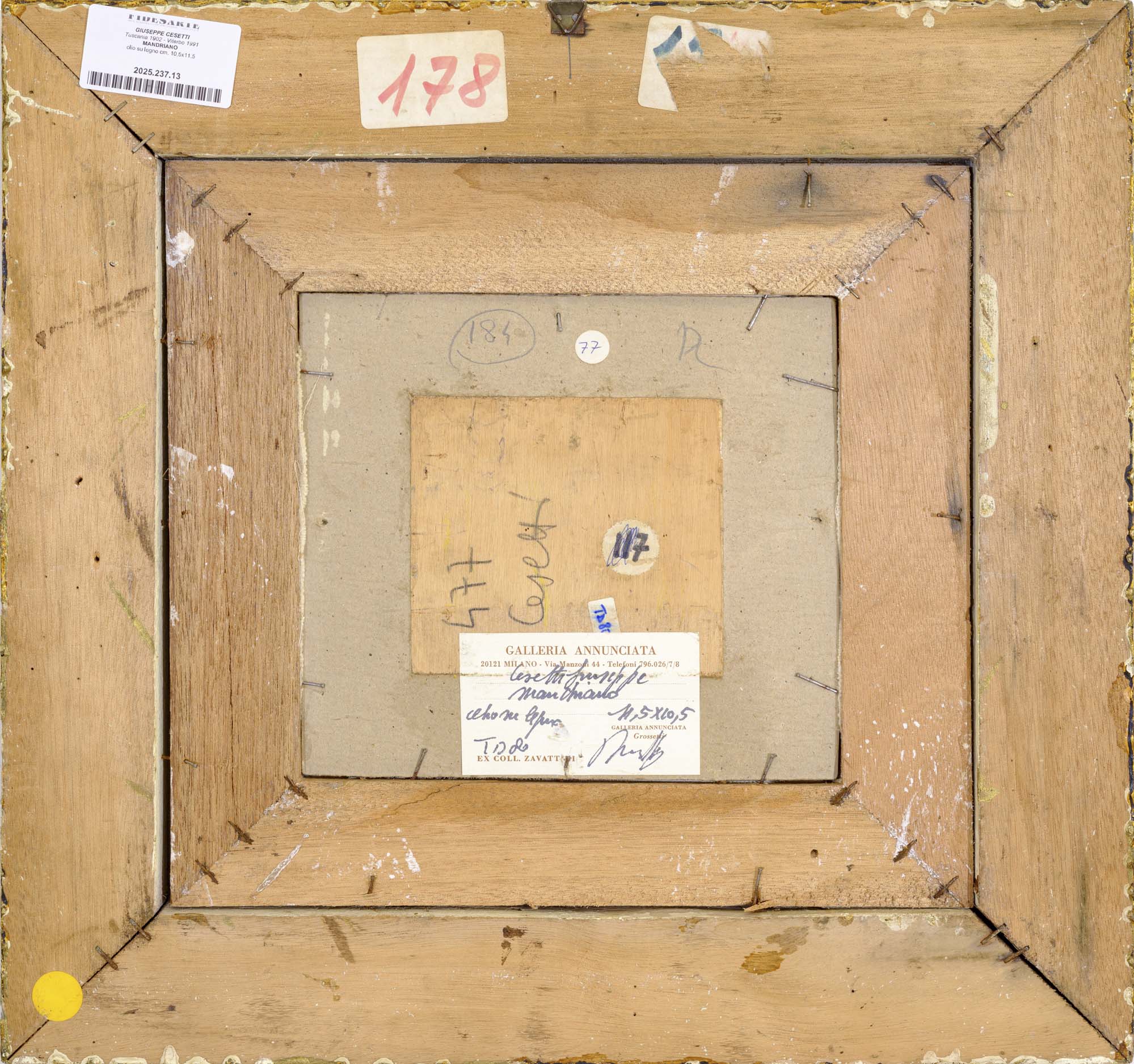 Milano, Galleria Annunciata - etichetta al retro