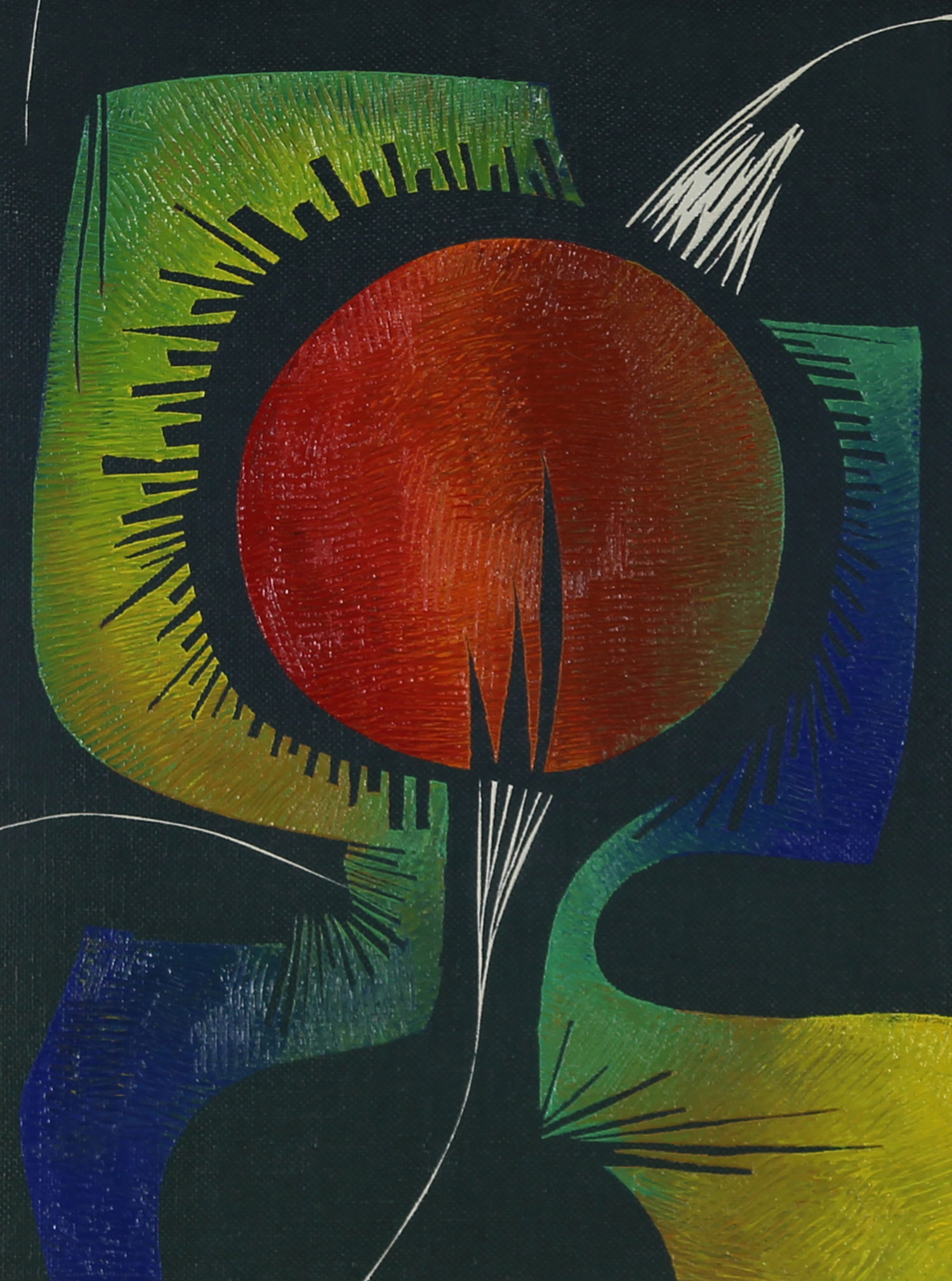 Becheroni Elvio Senza titolo, 1972 olio su tela, cm. 40x30 firmato e datato in basso a destra, etichetta Studio f.22 di Palazzolo sull'Oglio e timbro Galleria Bonaparte di Milano al retro della cornice