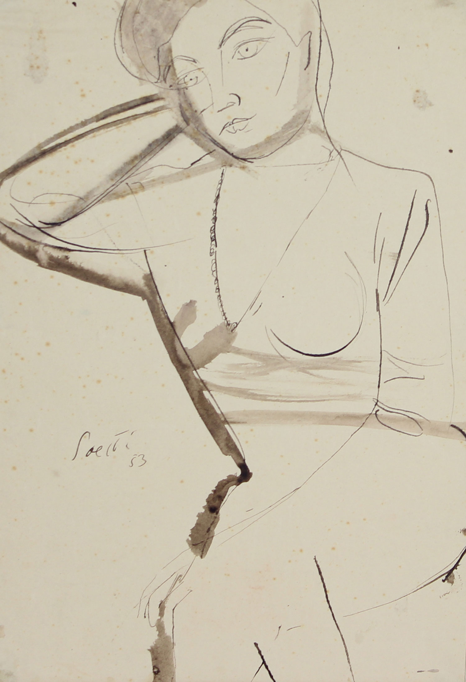 Saetti Bruno Figura femminile, 1953 china e acquarello su carta, cm....