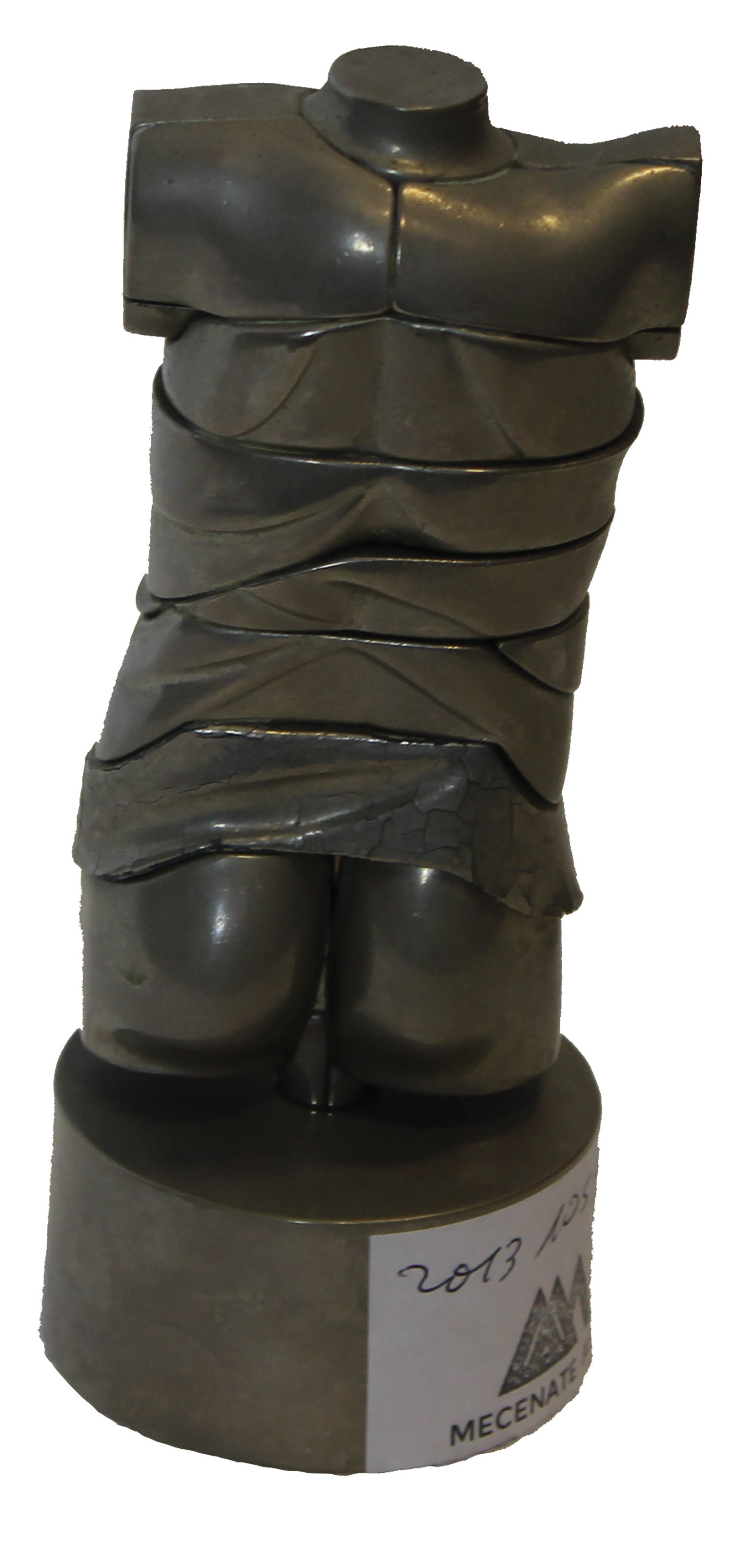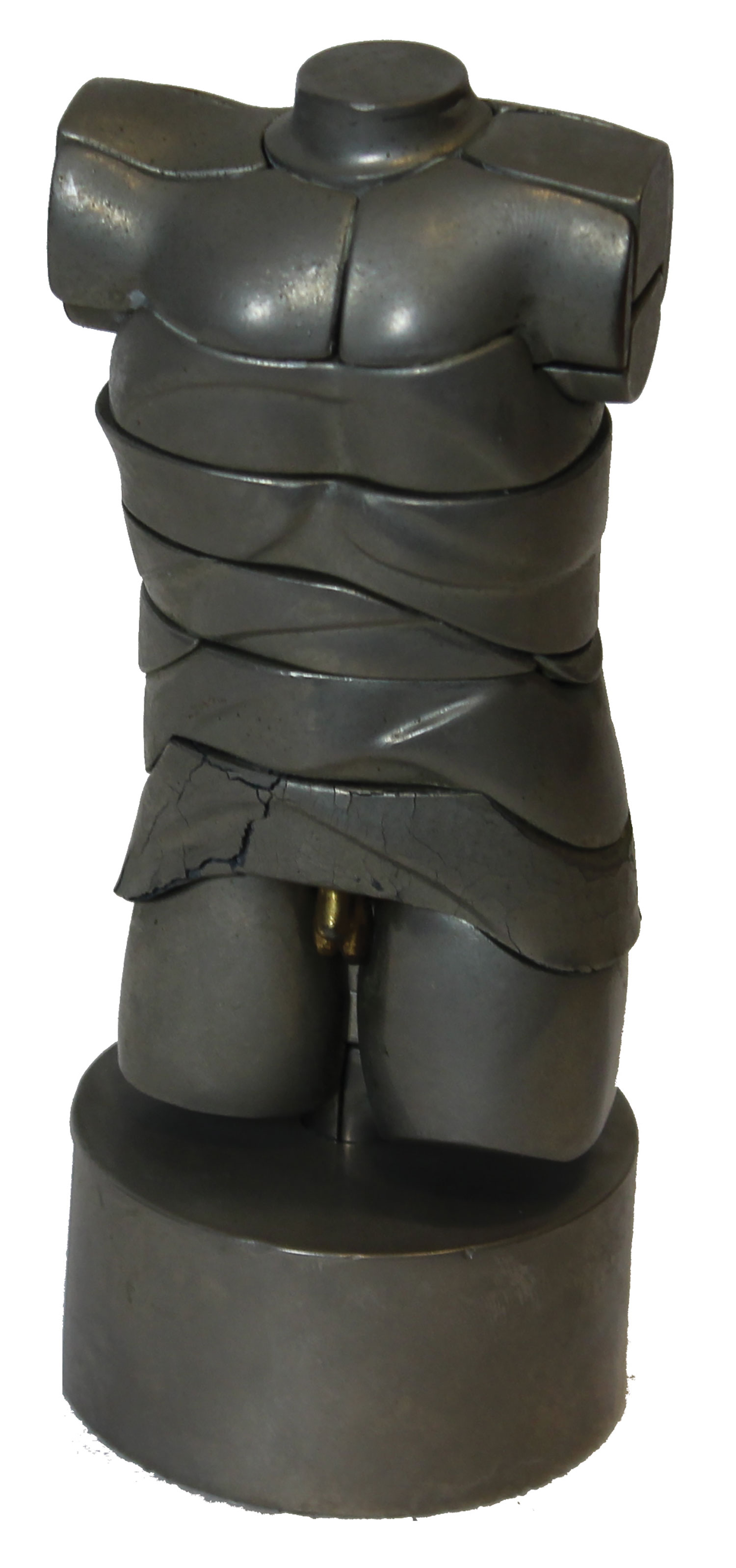 Berrocal Miguel Le Mini David, 1969 scultura smontabile composta da 22 elementi in alpacca e ottone, cm. 5,4x10x3,6, es. 3780/5000 firmata sulla spalla, lotto comprensivo di volume Mini David, l'opera presenta crepe nella sezione inferiore del torso