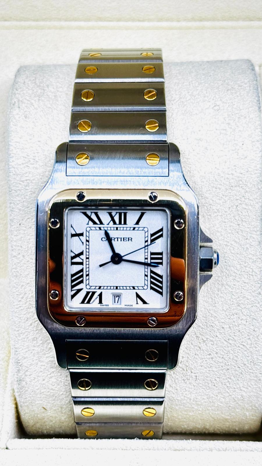 Marca Cartier Modello (Orologio) Santos Galbée Numero di referenza 1566 Carica Quarzo Materiale della cassa Oro/Acciaio Materiale cinturino Oro/acciaio scatola originale, no documenti Cartier, garanzia del negozio di un anno Cassa Materiale della cassa Oro/Acciaio Diametro 29 x 41 mm Vetro Vetro zaffiro Cinturino Materiale cinturino Oro/acciaio Colore cinturino Argento - COMMISSIONE D’ASTA 25%