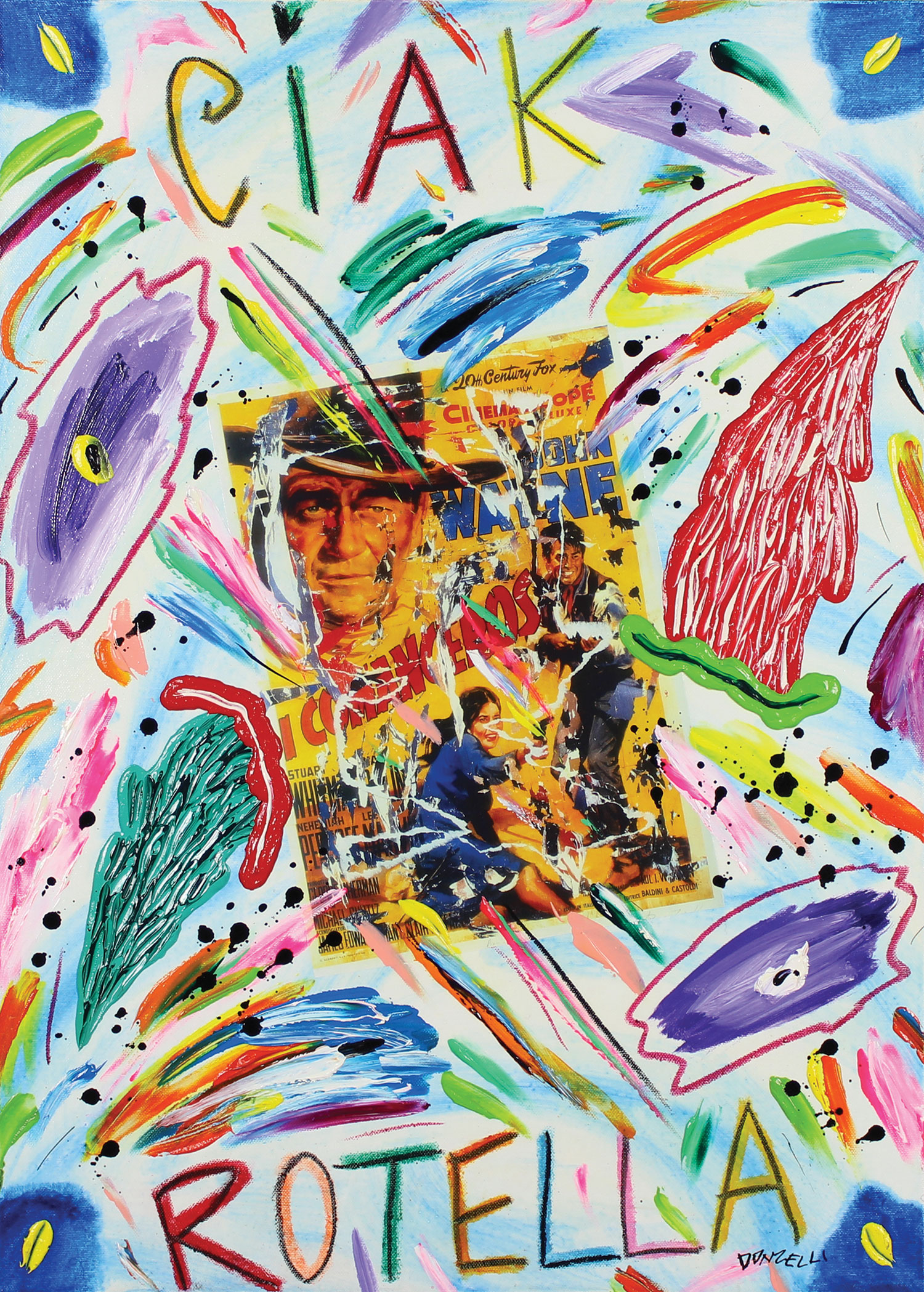 Donzelli Bruno Ciak Rotella tecnica mista e applicazioni su tela, cm70x50...