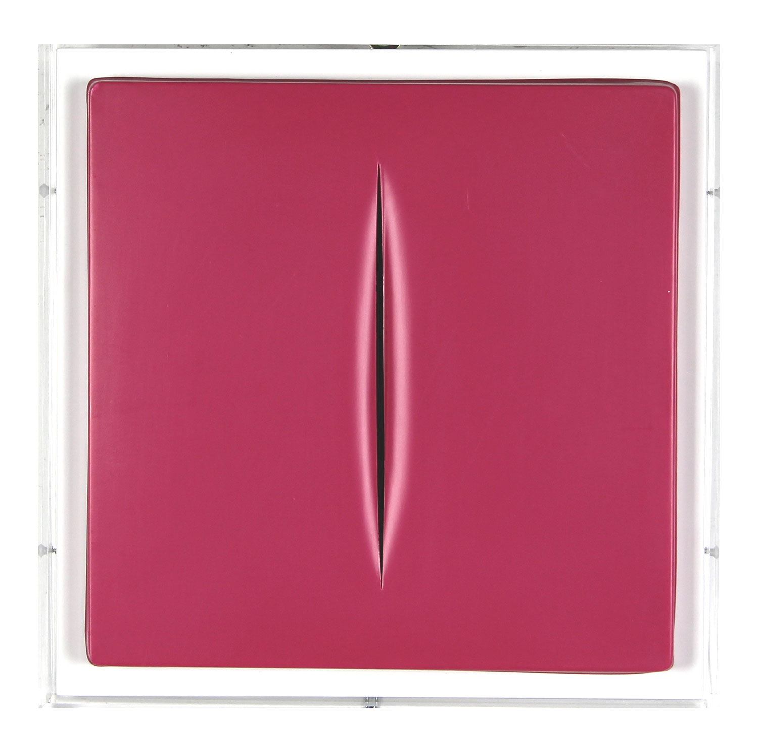 Fontana Lucio Concetto Spaziale, 1968 multiplo in pvc entro teca di...