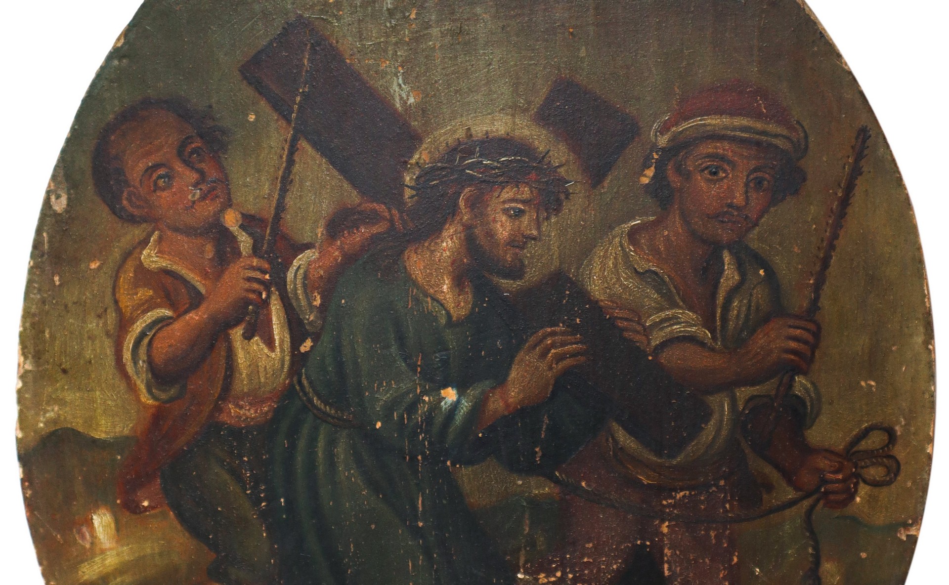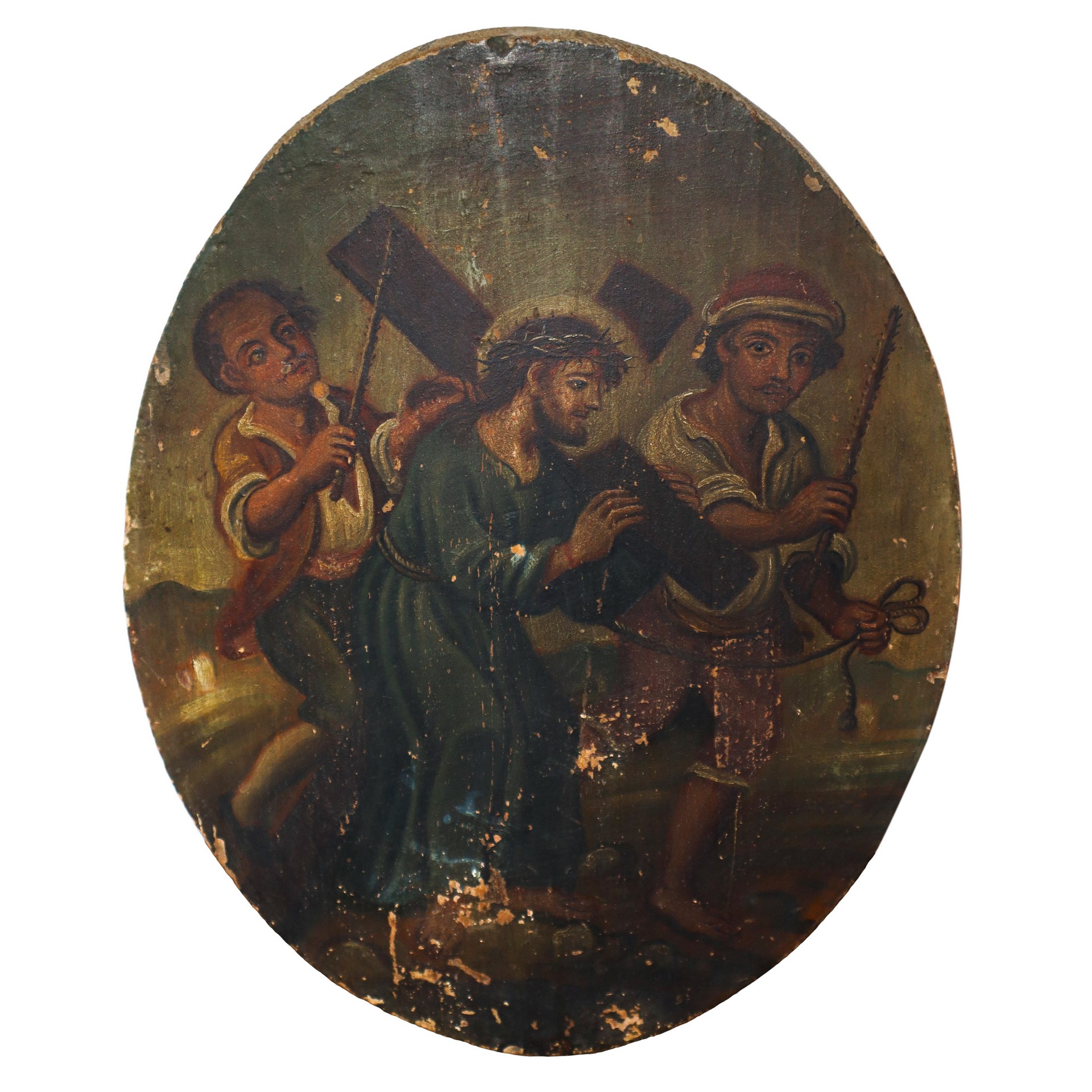 Cristo Crucifero, stazione della via Crucis, 18° secolo cm 42x33 Olio su tavola
