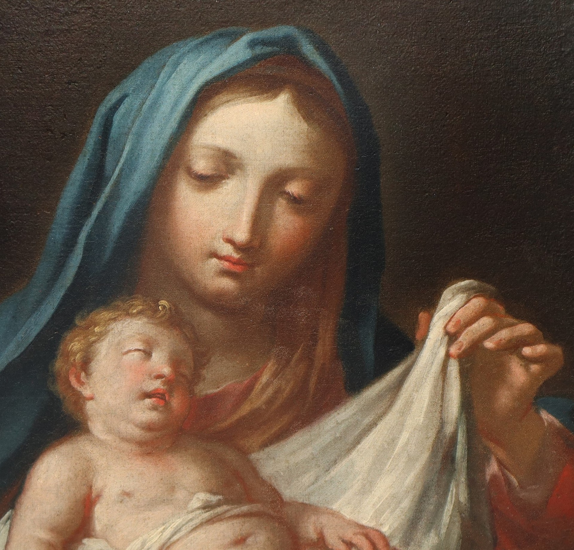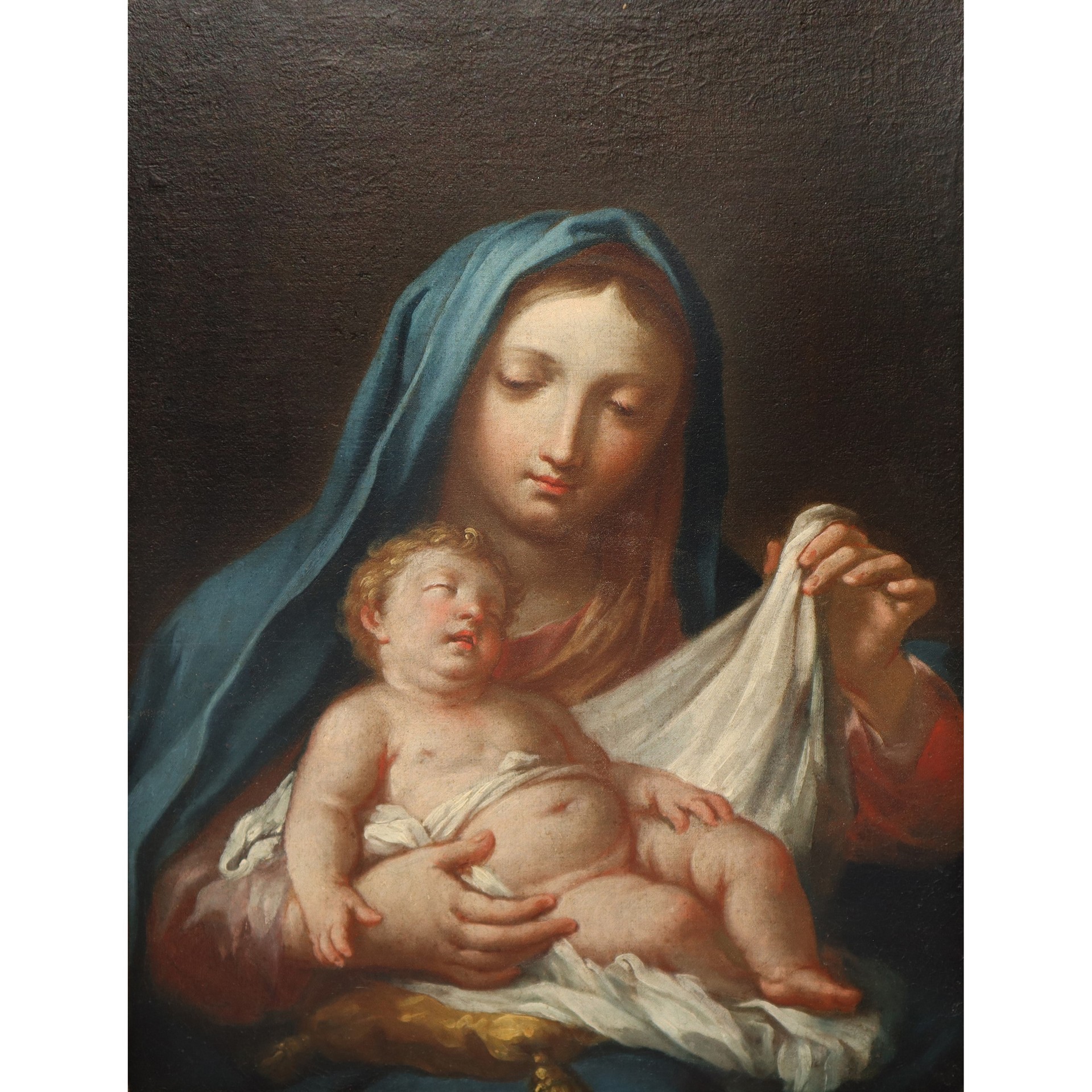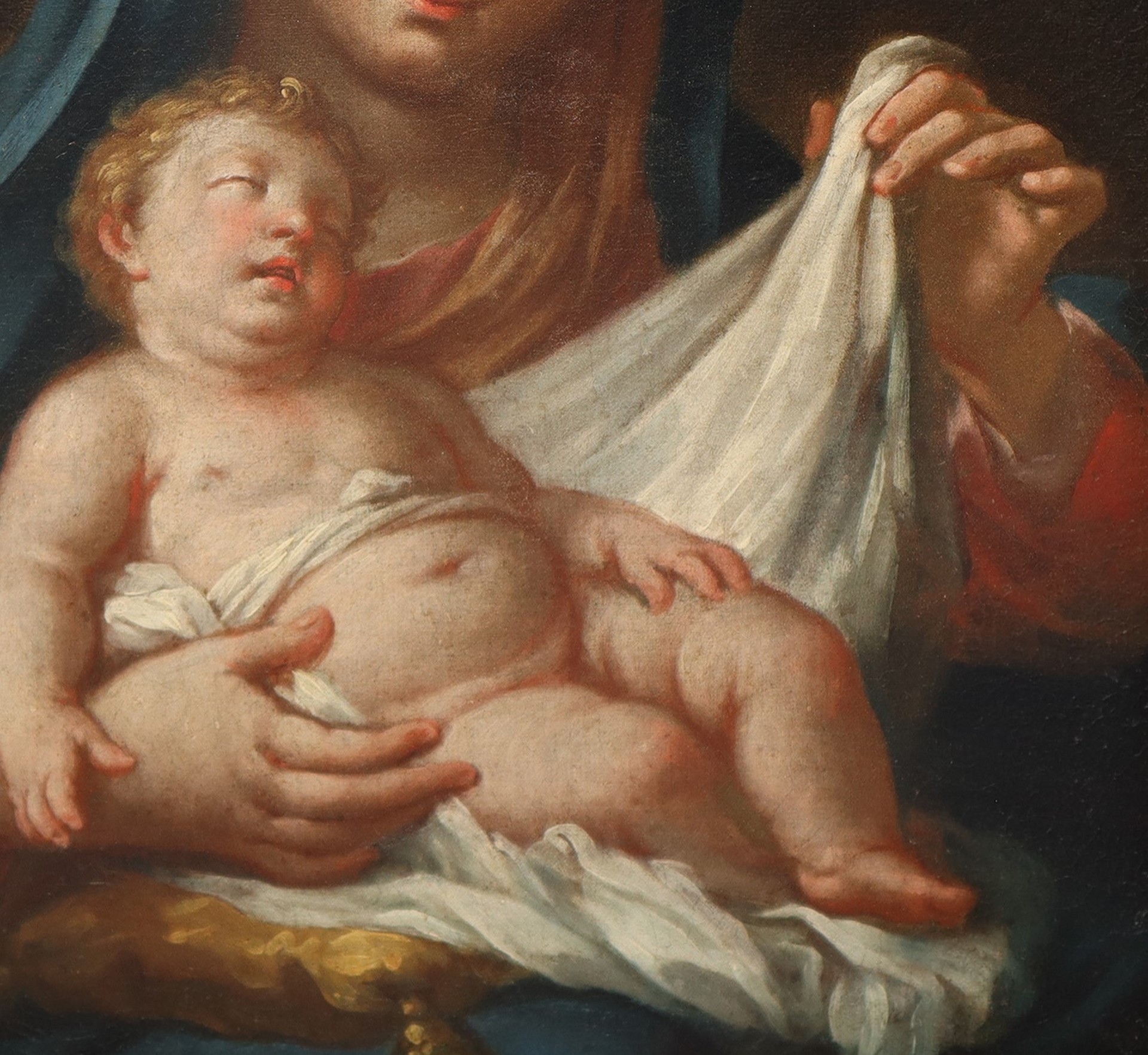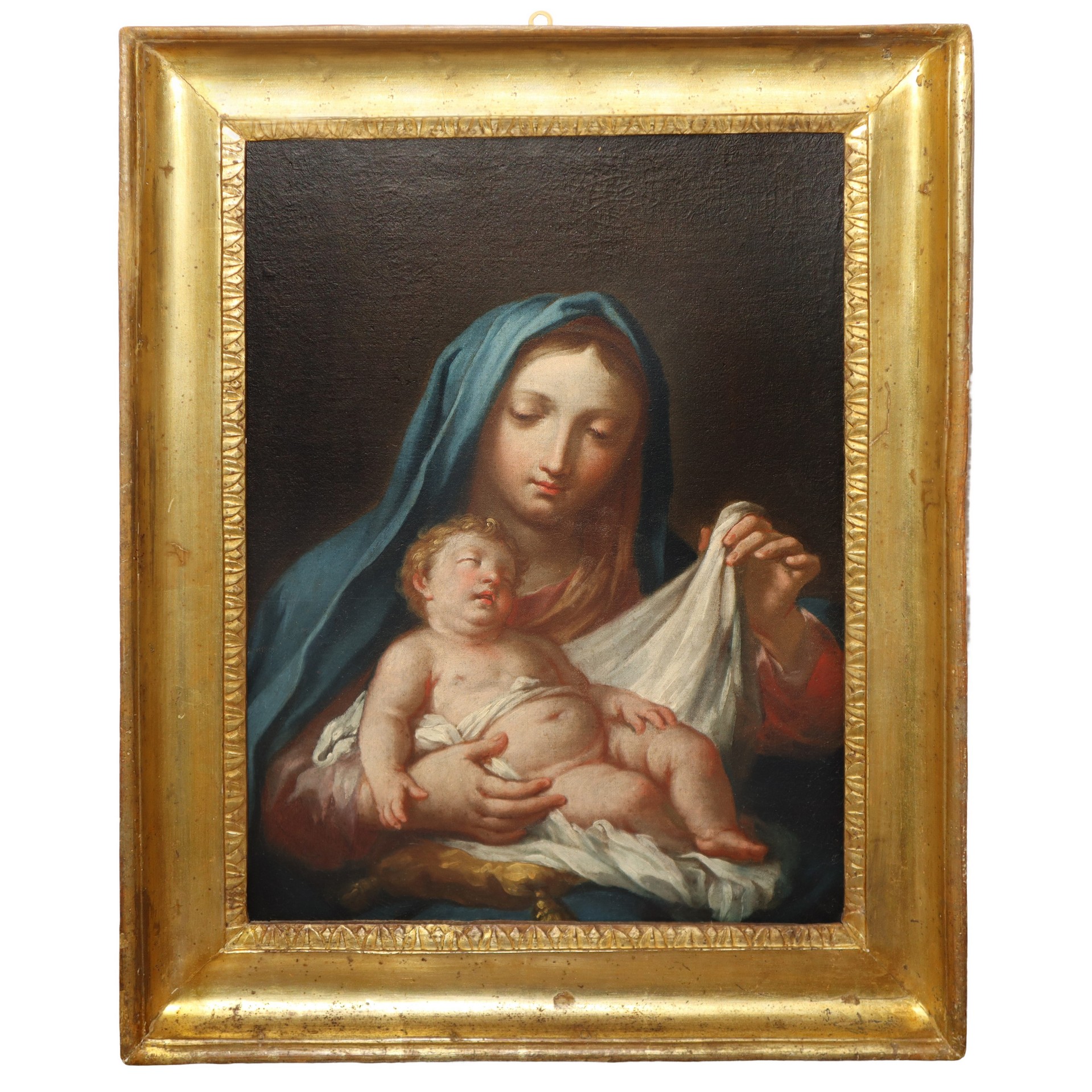Madonna con Bambino, 17° secolo H 47,5x 35,5, in cornice del XIX secolo a mezza canna dorata H 56x44 Olio su tela