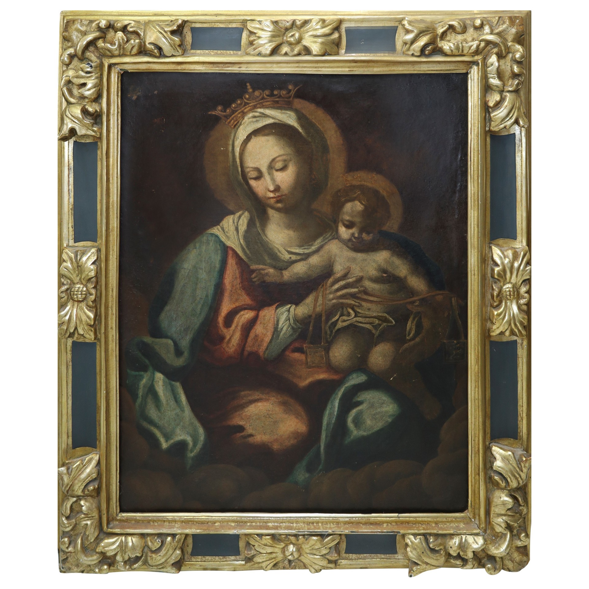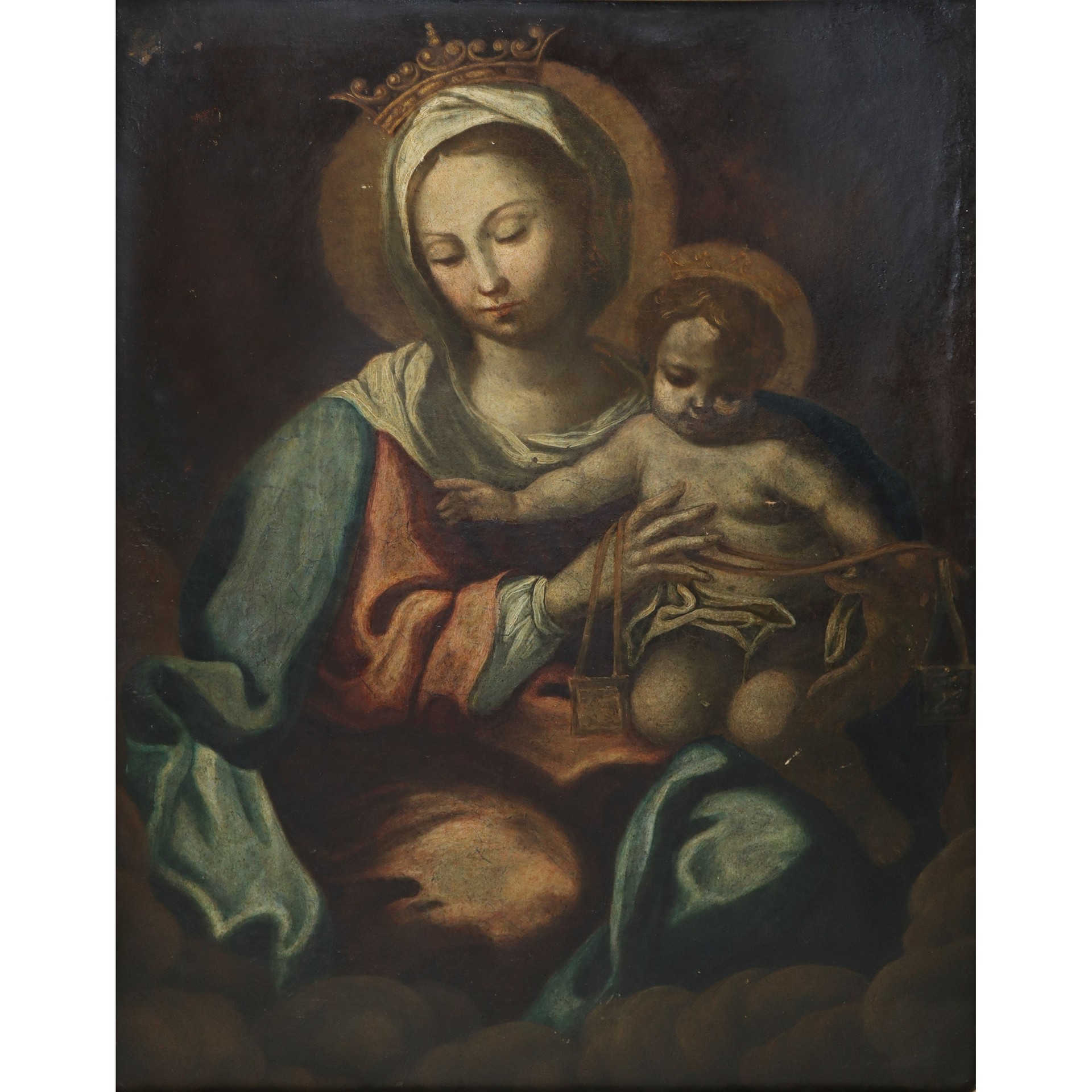 Pietro Paolo Vasta (scuola di) (Acireale 1697 - Acireale 1760) - Madonna del Carmelo con Bambino, 18° secolo H cm 82x63,5 - in cornice 105x85 Olio su tela