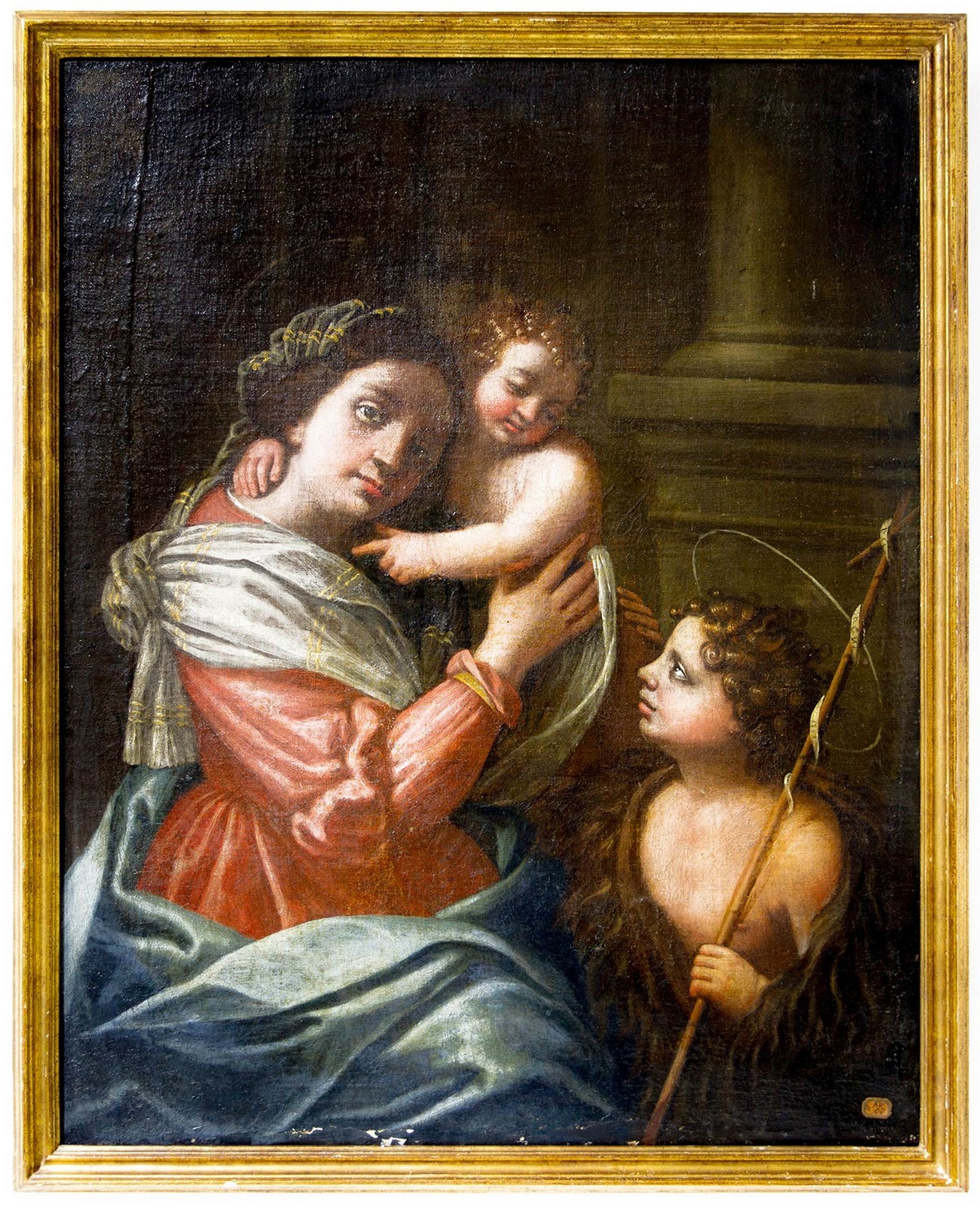 Madonna con bambino e S. Giovannino, 18° secolo H cm 90x71 Olio su tela
