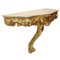 Piccola consolle da muro in legno laccato e dorato, piano in marmo bianco