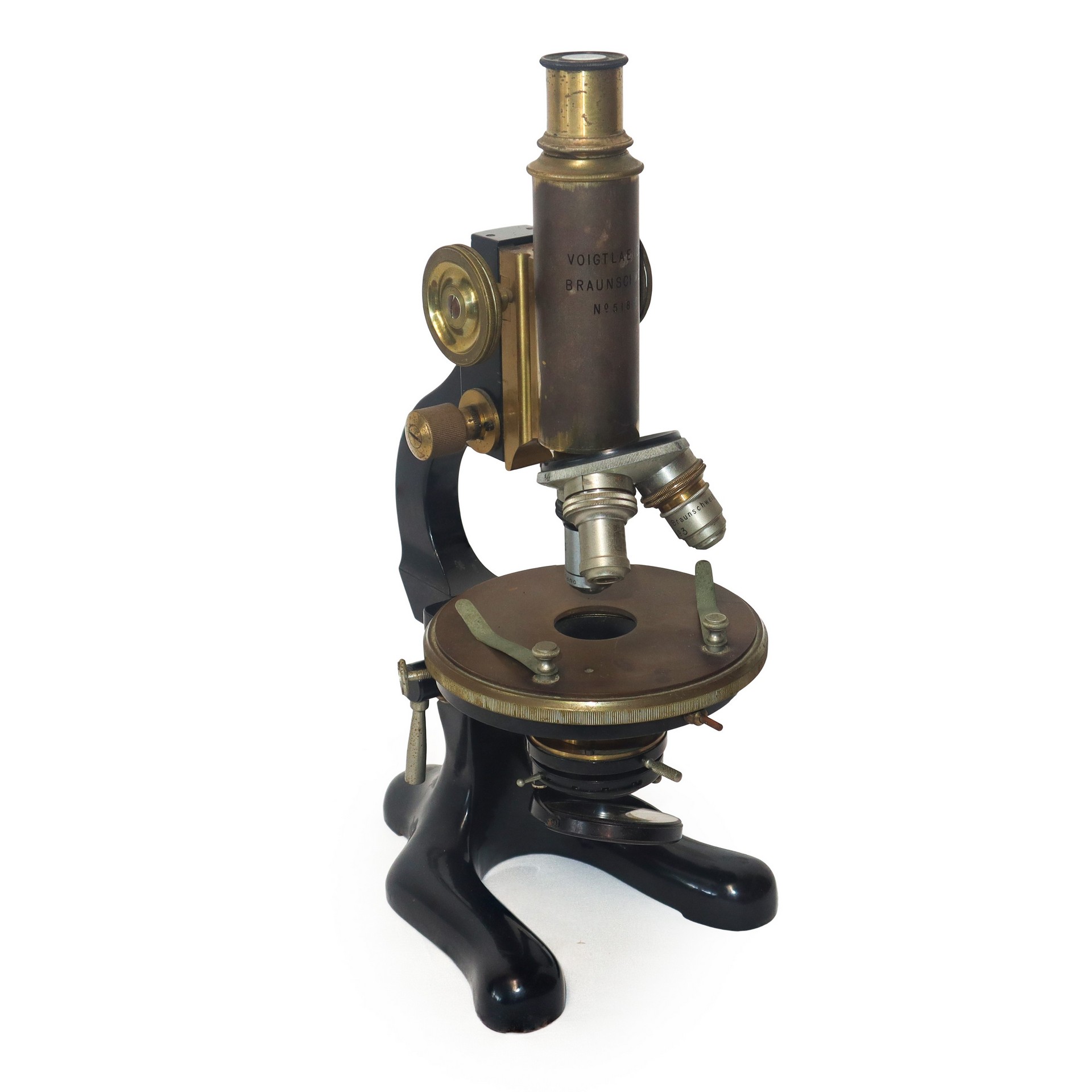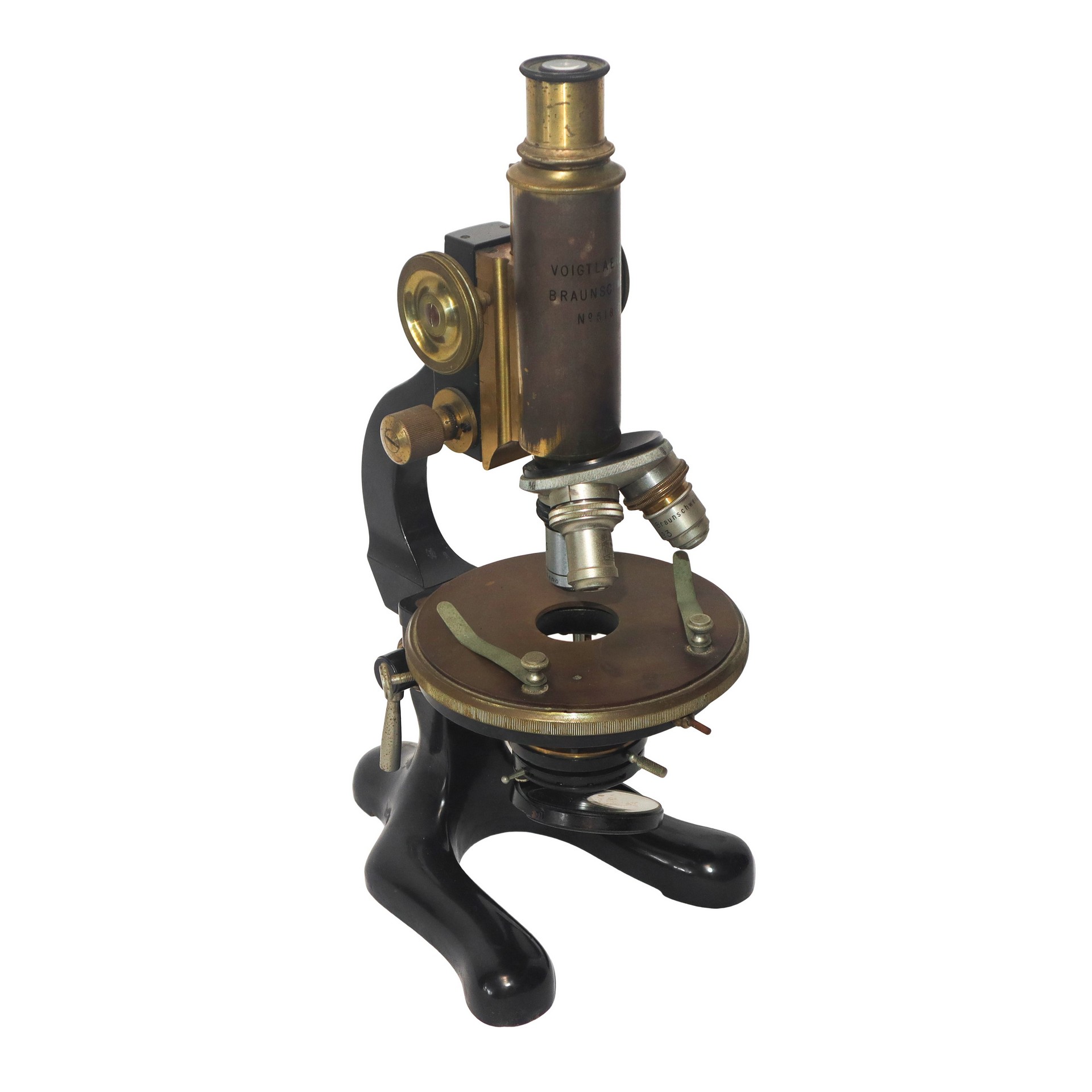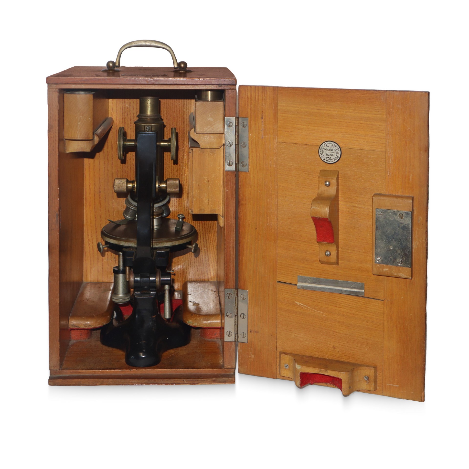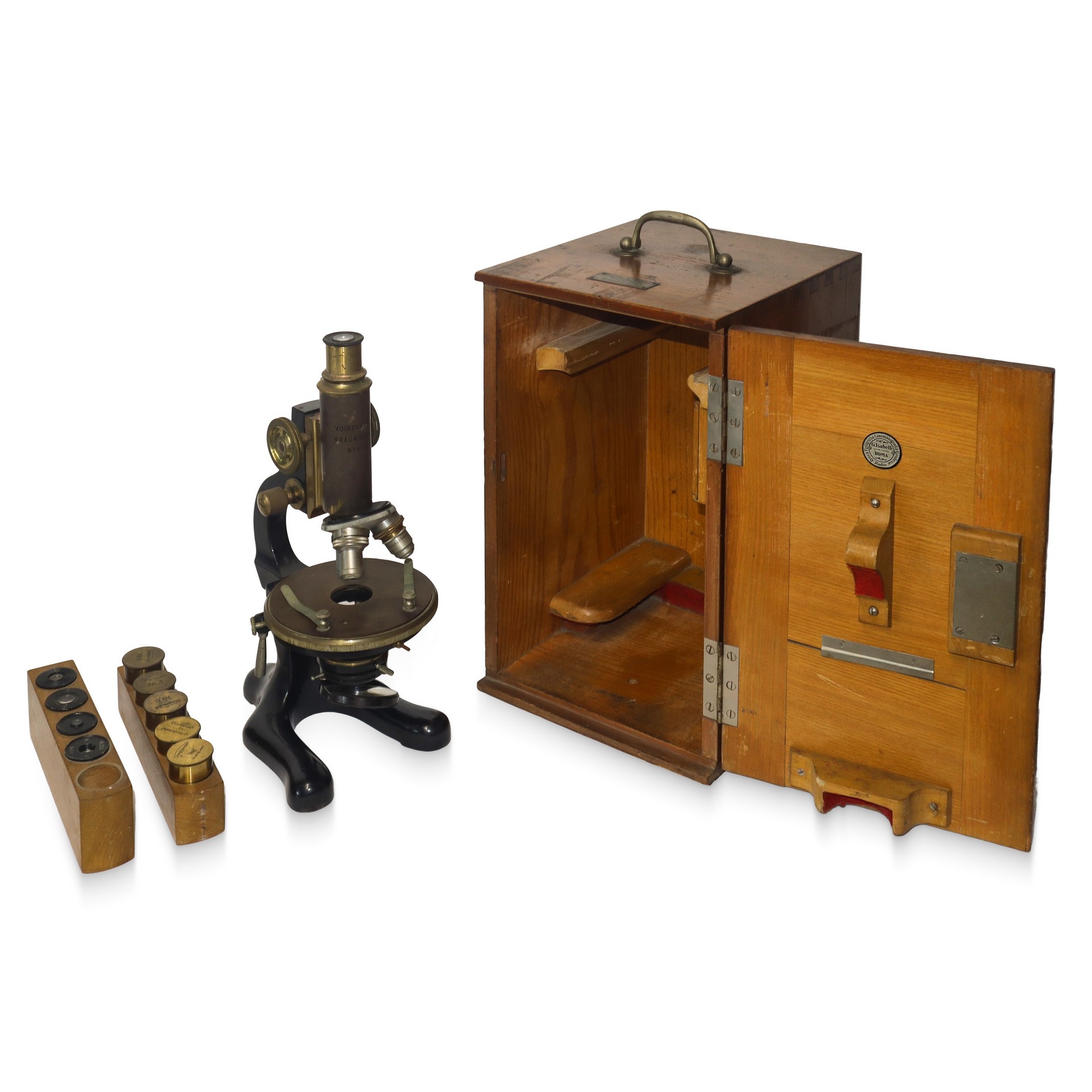 Voigtländer & Sohn Germania (1856) - Microscopio ottico da viaggio h cm 34,5X20,5X22,5 Targhetta in metallo con marchio della produzione