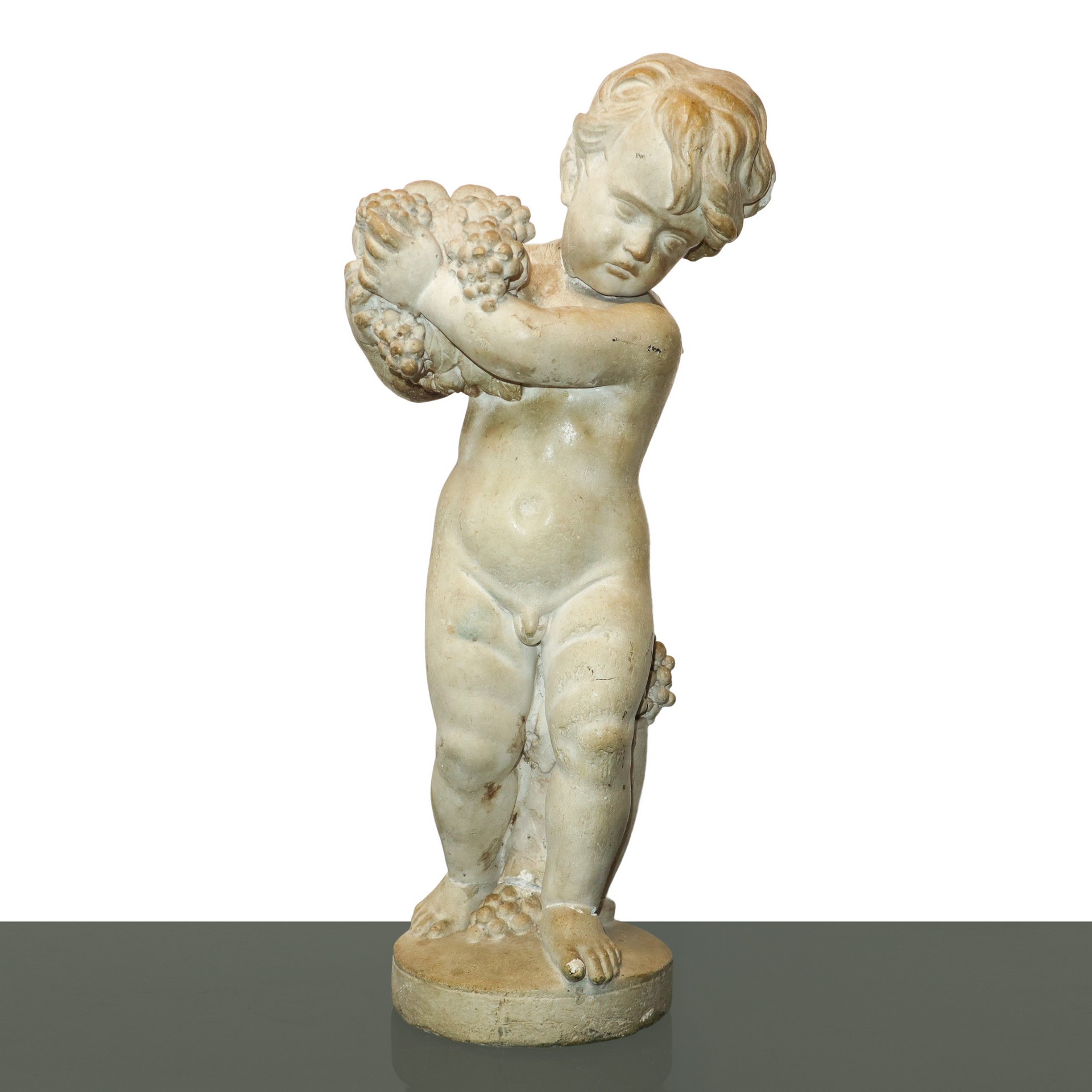 Bacco bambino, scultura in malta cementizia h cm 50 presenti rotture e incollature, da restaurare