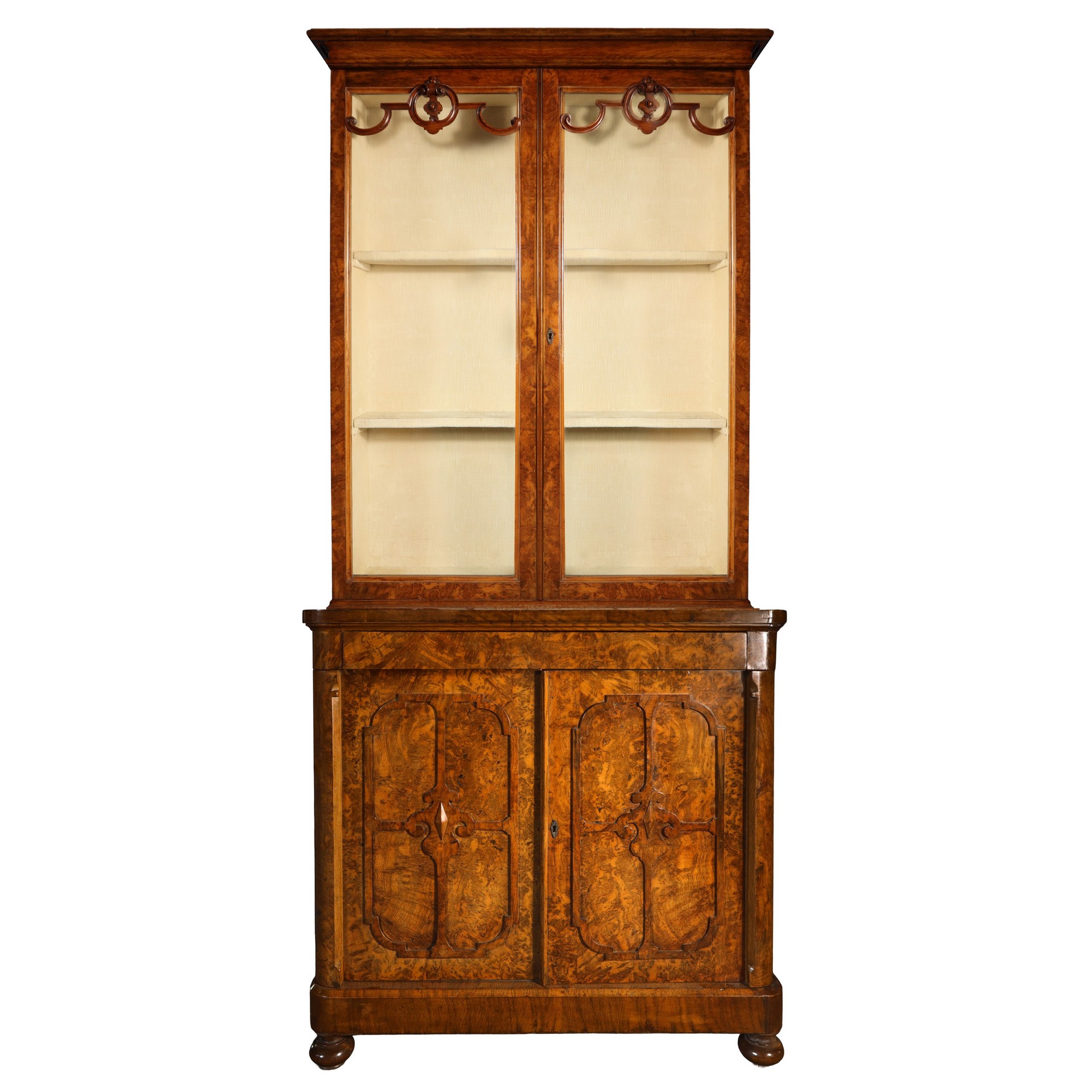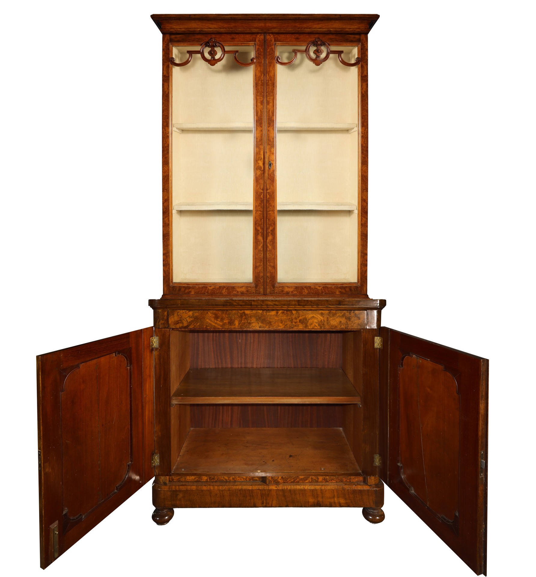 Vetrina a due corpi: corpo superiore a vetri, corpo inferiore a due sportelli