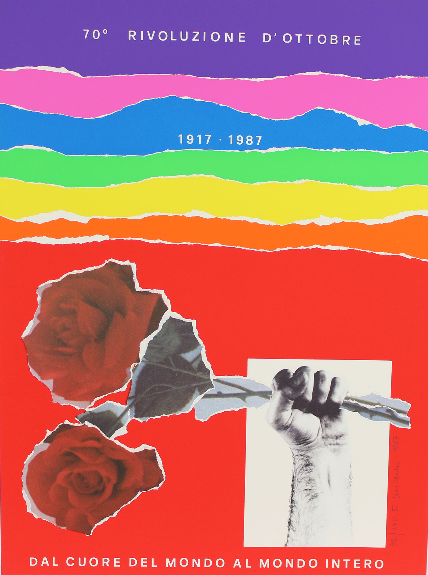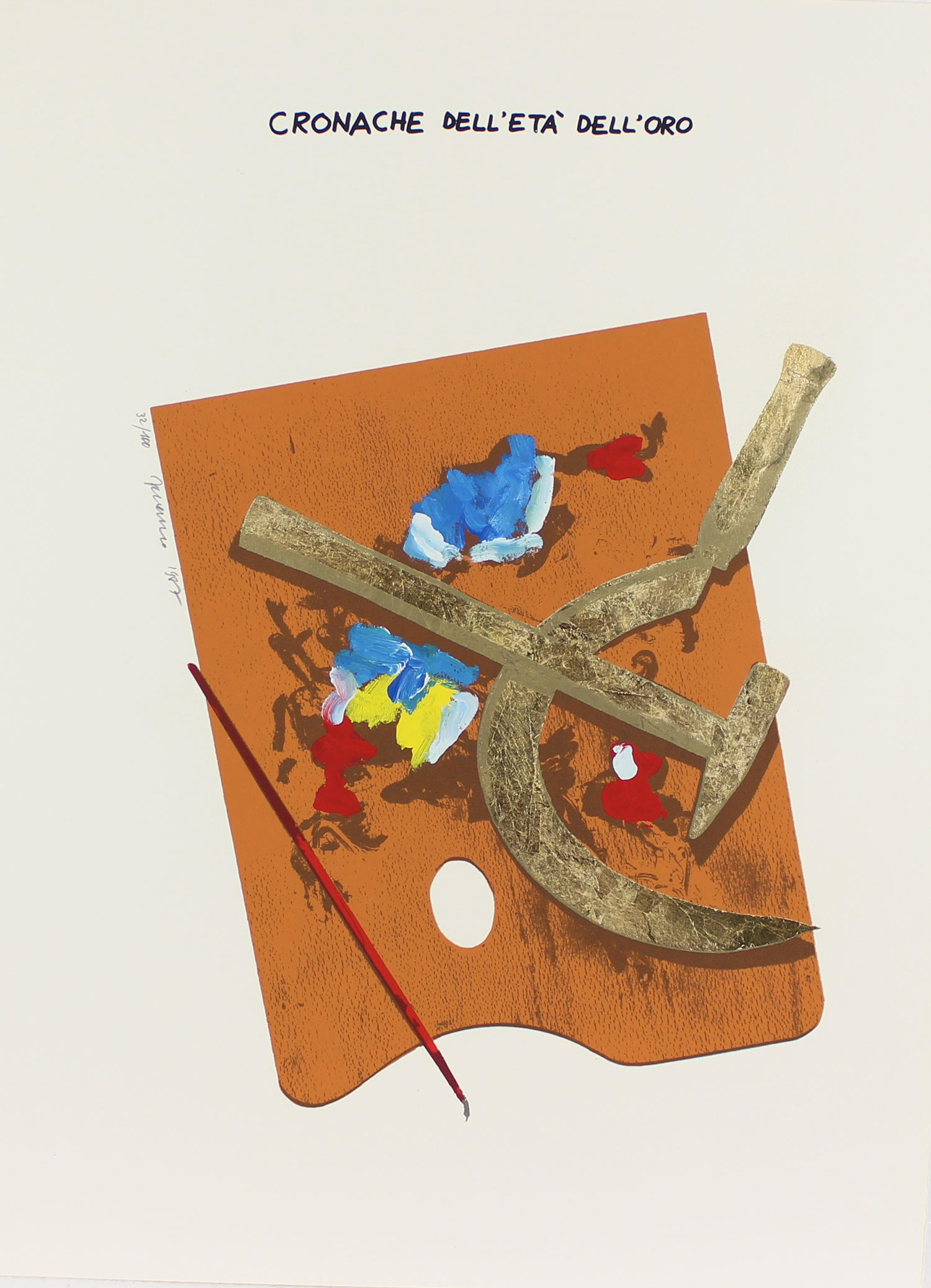 AA.VV. Nel Cuore del Mondo, 1987 cartella contenente 3 litografie su carta (Patrizia Guerresi, Eugenio Miccini, Aldo Mondino) e 2 serigrafie (Enrico Baj e Sarenco), cm. 68x50, es. 32/100 Edizioni De Paoli Editore Brescia senza cornici